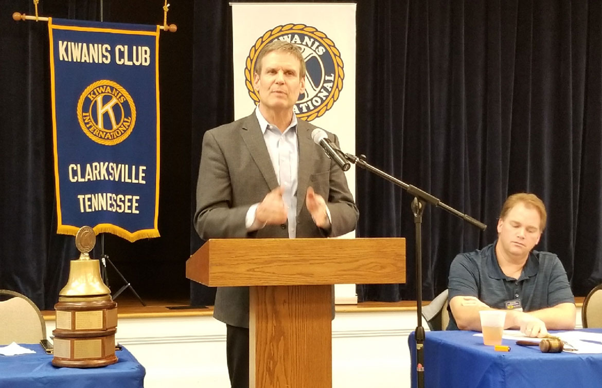 CLARKSVILLE, Tenn. – (CLARKSVILLENOW) Bill Lee, candidate for Governor of Tennessee, spoke to the Downtown Kiwanis Club Tuesday. He covered many topics including the importance of education for children, the opioid crisis and rural development including broadband internet. Bill’s wife, Maria, accompanied him.