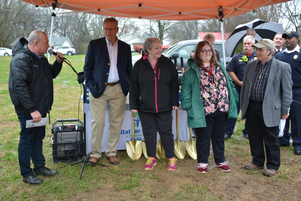 CLARKSVILLE, Tenn. (CLARKSVILLENOW) – Even the rain Tuesday morning couldn’t dampen the spirits of Sherry Elliott or her friends who came out to be a part of the groundbreaking ceremony for Elliott’s new home with Habitat for Humanity of Montgomery County.