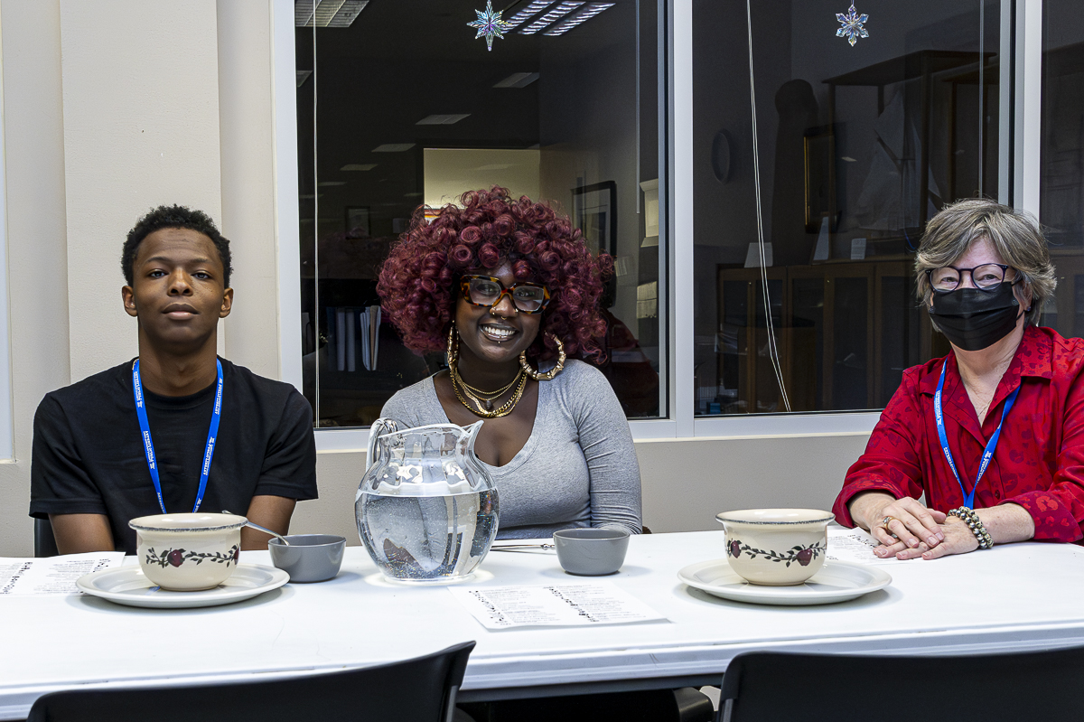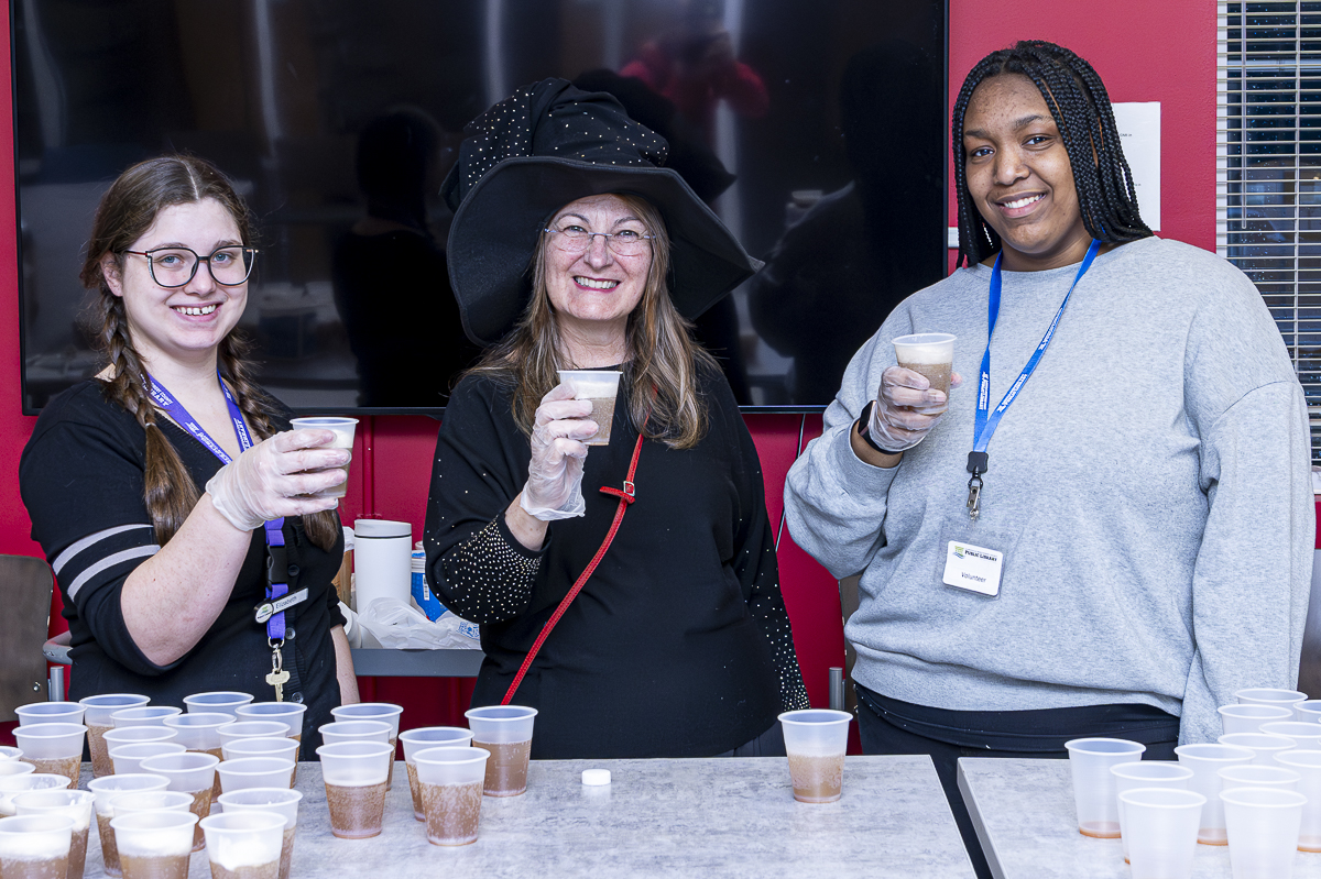 Elizabeth Donegan, Ana Maria, and Briyonna Henry Serving up the Butter Beer at the Harry Potter Night at the CMC Public Library February 6, 2025 (Jeff Danault)
