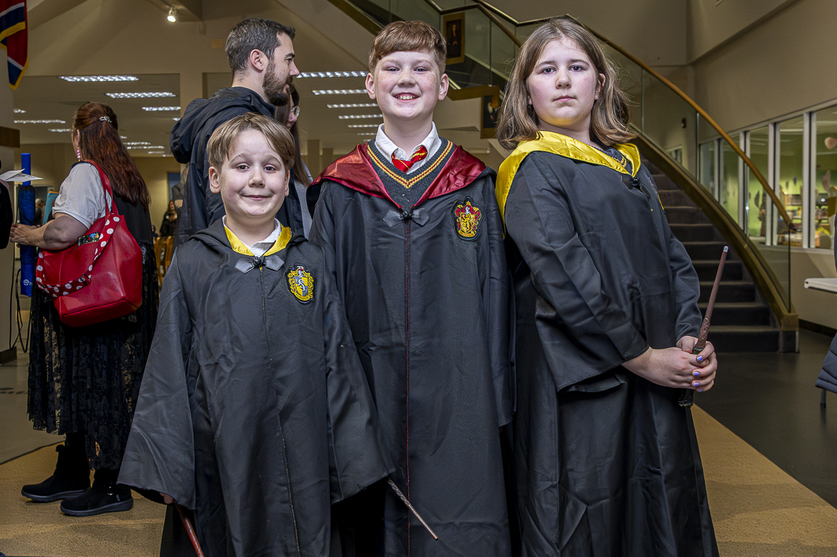 Roxie, Maddox, and Oaklie Ferguson at the Harry Potter Night at the CMC Public Library February 6, 2025 (Jeff Danault)