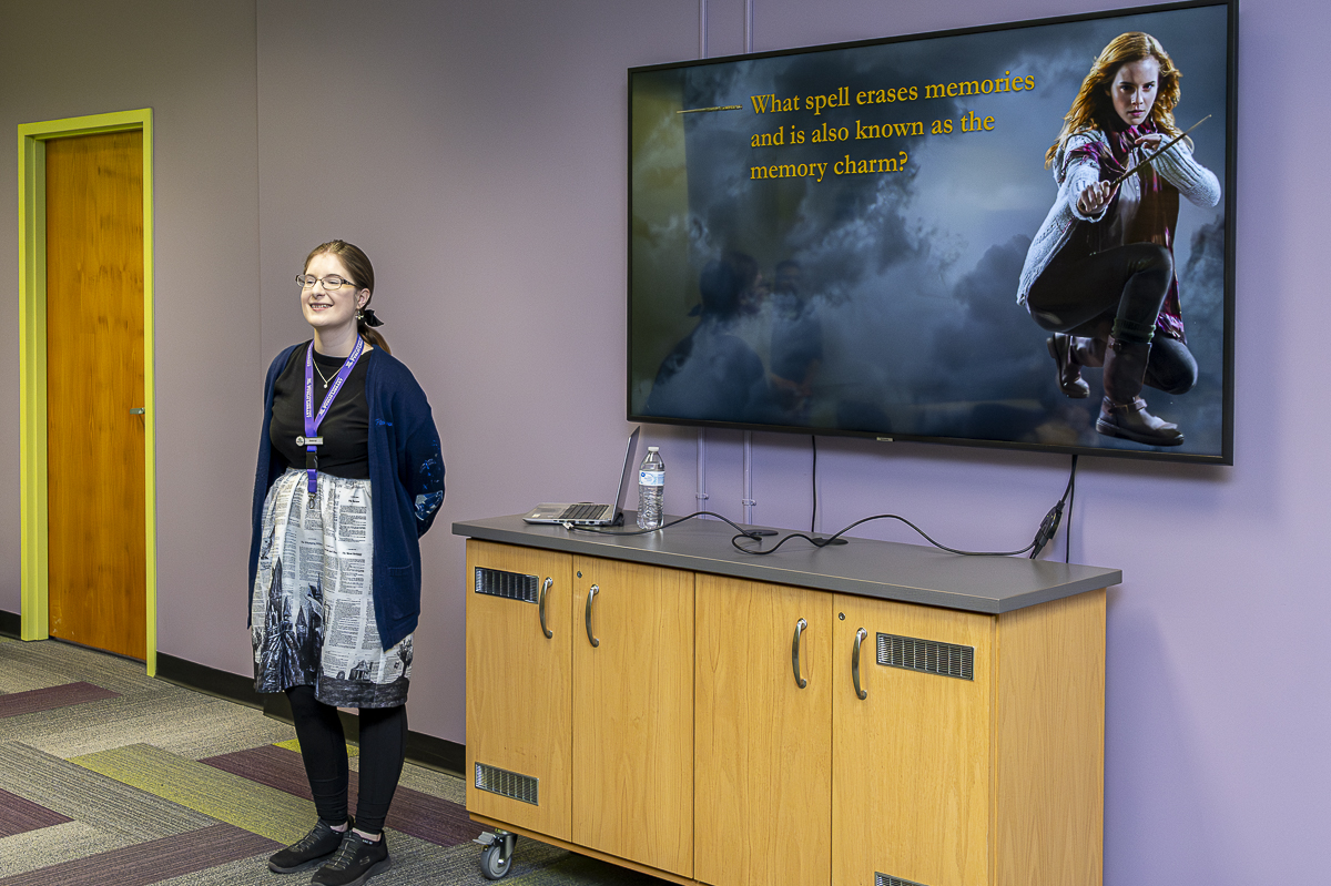 Joelle Platz of Figments and Fripperies at the Harry Potter Night at the CMC Public Library February 6, 2025 (Jeff Danault)