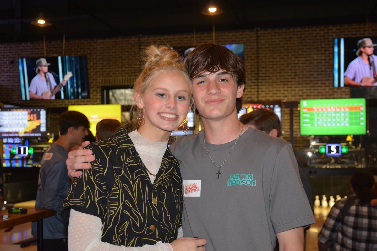 Tiffany Hill & Aiden Gambill from Q108 at the watch party for American Idol Star Haven Madison of Clarksville at Varsity Pins on Apr. 2, 2023. (Lee Erwin