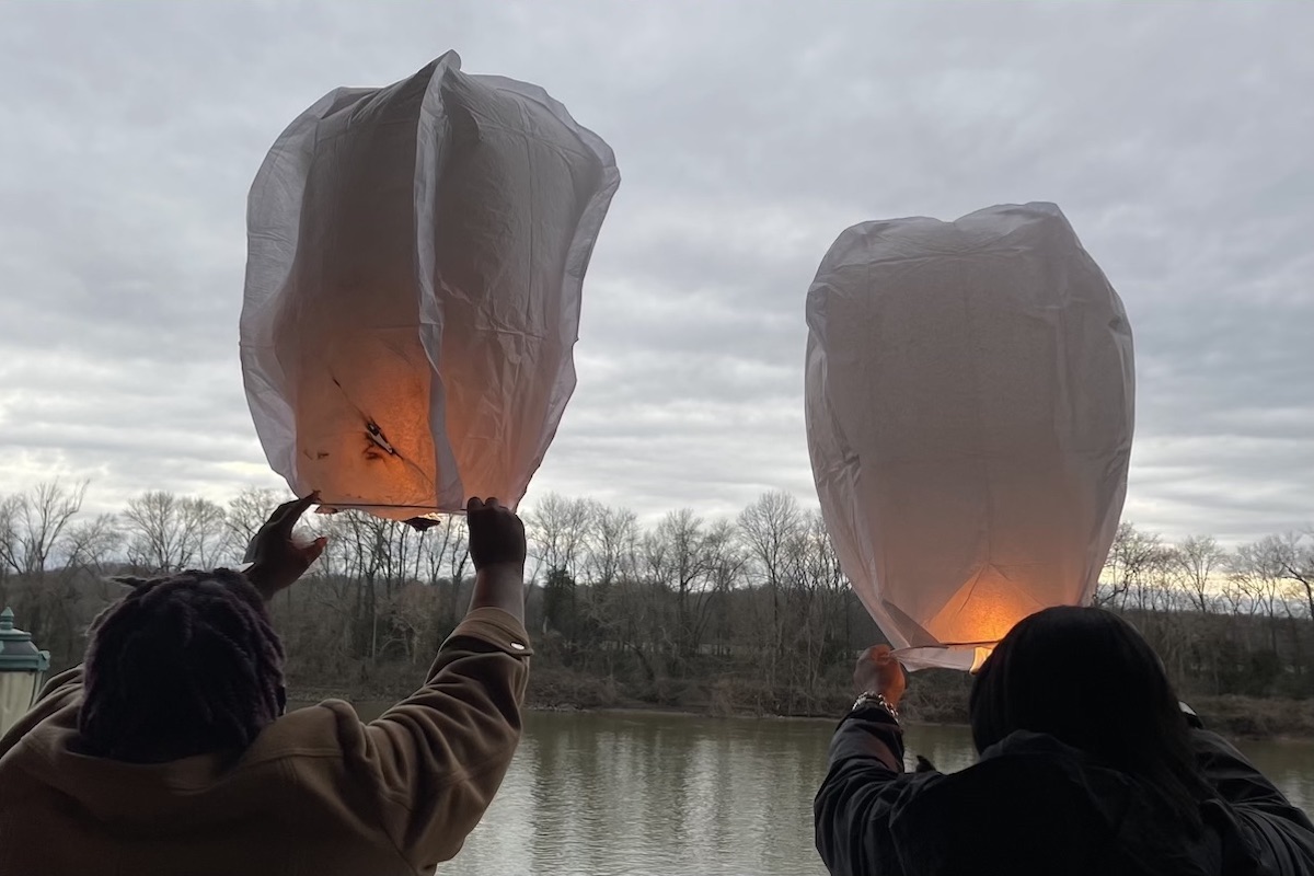 The vigil ended when friends and family gathered to write messages on white lanterns to send off up to the sky. They watched arm-in-arm as the lanterns floated up over the Cumberland River.