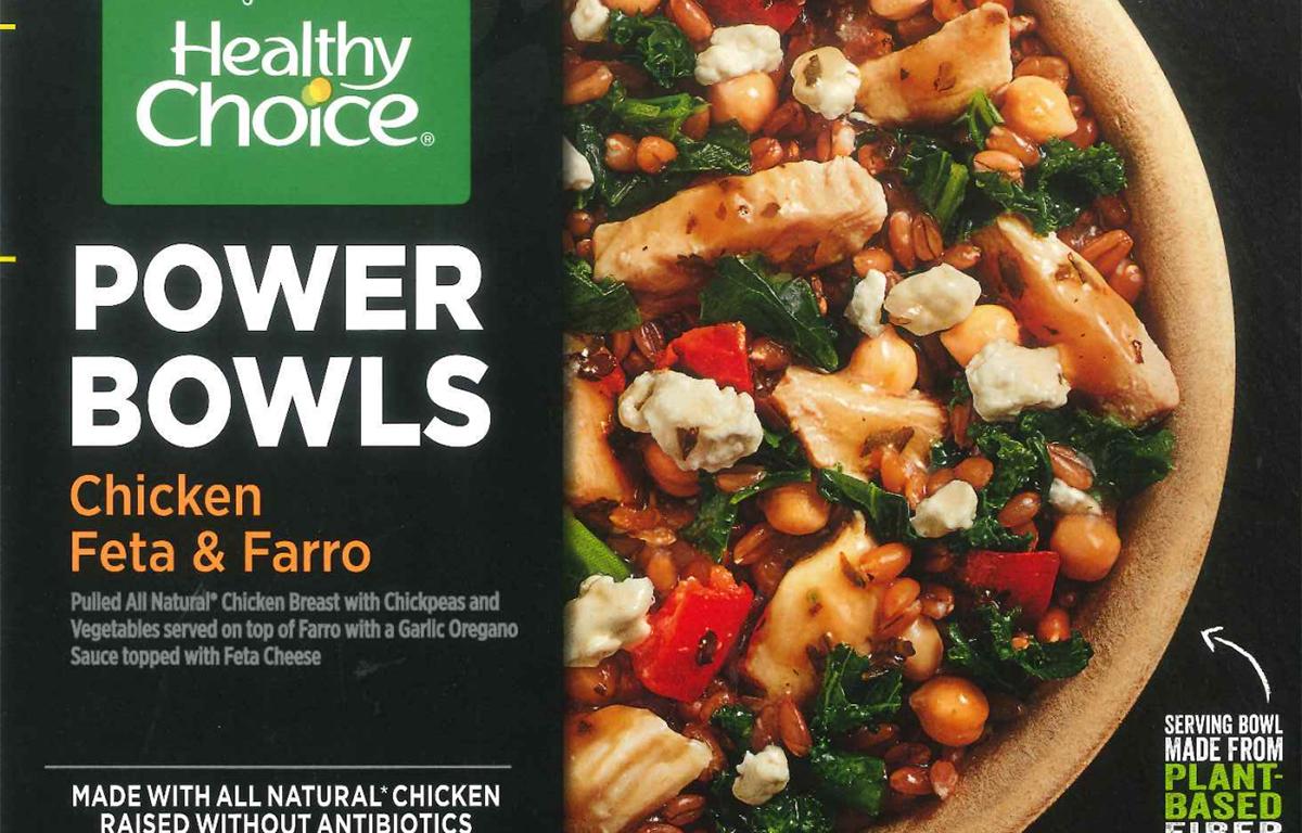 9.5-oz. cartons containing “Healthy Choice POWER BOWLS Chicken Feta & Farro” with lot code 5006002320, UPC code 072655001800 and a best by date of 10/19/2020 on the label.