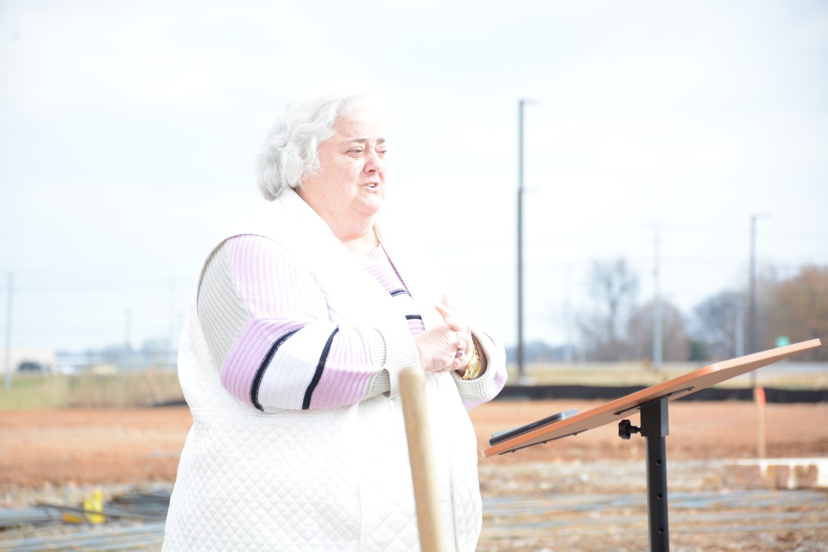 Theresa Harrington speaks at the Holiday Inn Express groundbreaking on Dec. 6, 2023. (Jeff Matthews)