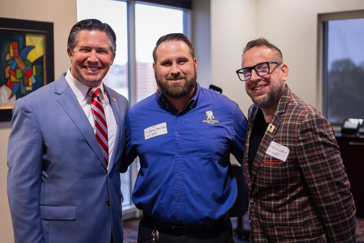 Wes Golden, Jacob Mousseau, & Patrick Luther celebrate The Honor Foundations Fort Campbell Campus Launch at F&M Bank on September 5, 2023. (Wesley Irvin)