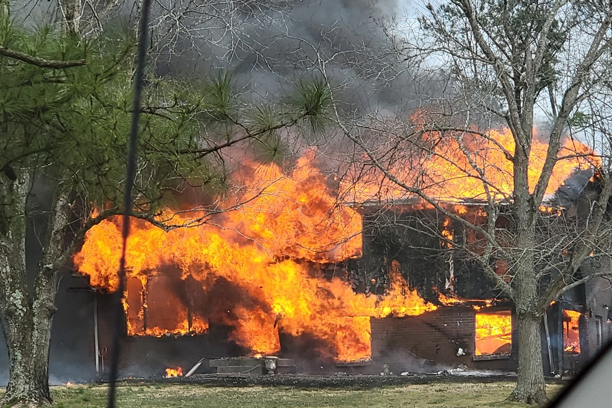 Update, 5 p.m.: Richard Frost, whose mother and father lived in the home on Dotsonville Road, has started a GoFundMe for his parents. The couple was not home at the time of the fire, but their dog died as a result.