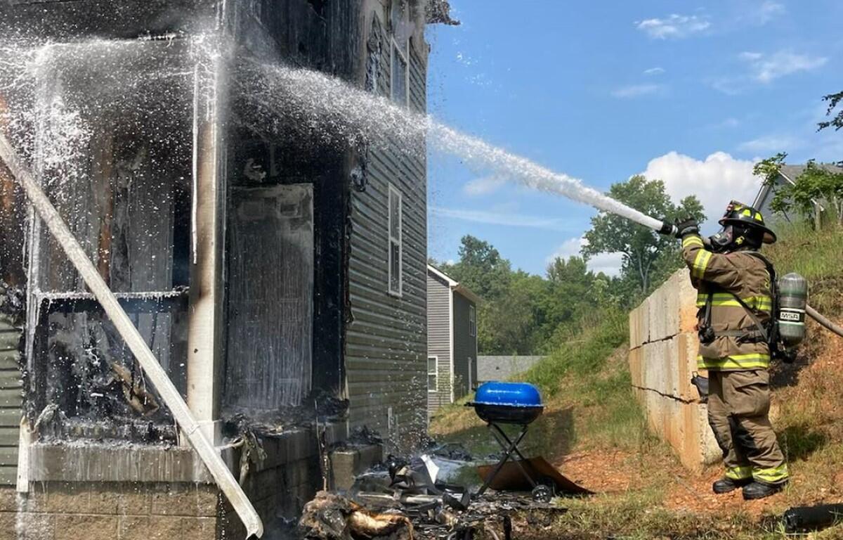 The fire started on the exterior of the rear of the home. The fire was quickly extinguished, and damage was kept to a minimum.