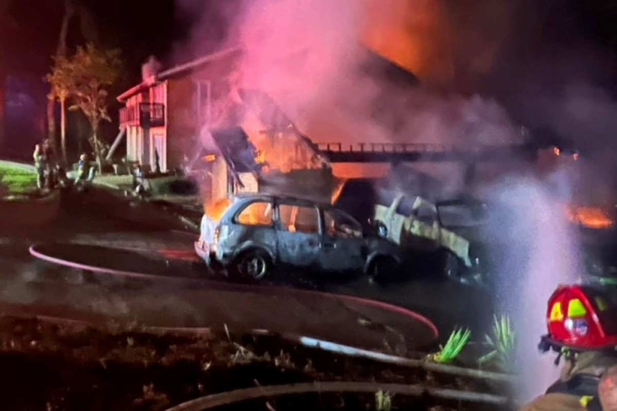A family of four escaped the blaze without injury, he said. The family dog also made it out safe, Rios said..