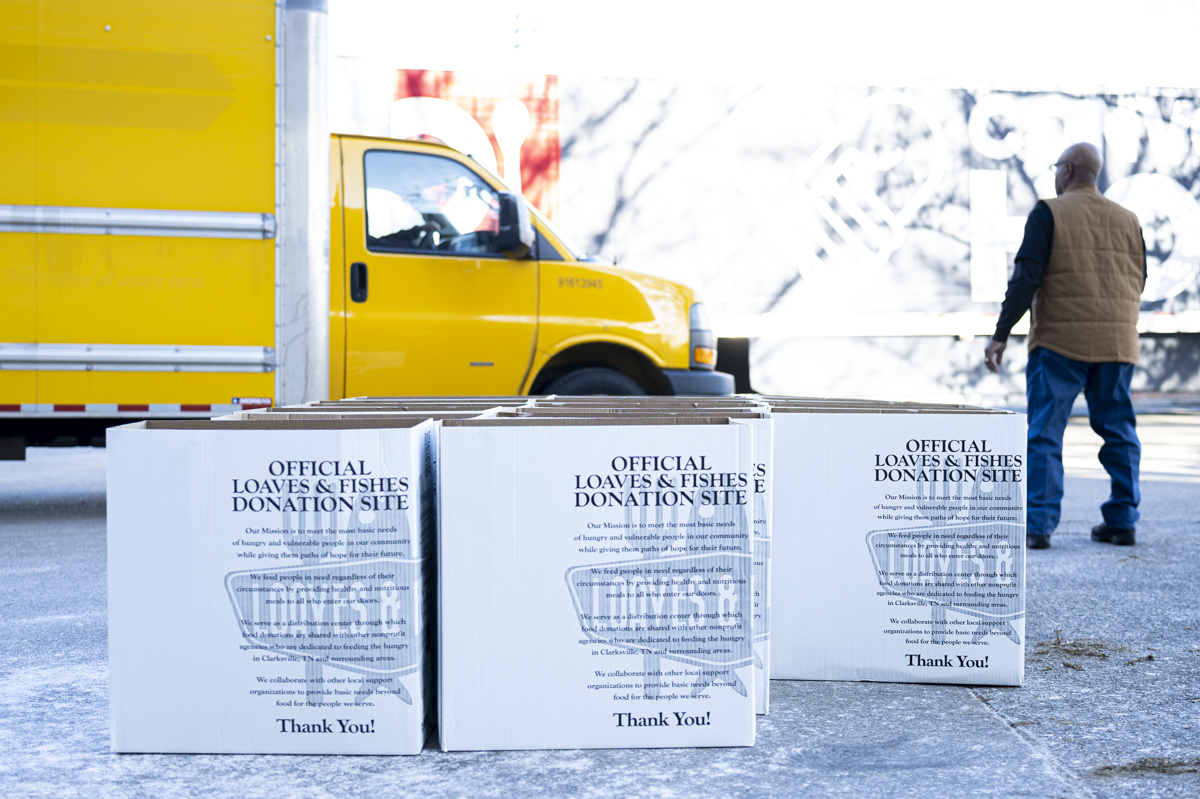 First full boxes loaded for Loaves And Fishes at The very first Clarksville Feeds The World Outreach Initiative on January 25, 2025. (Jeff Danault)