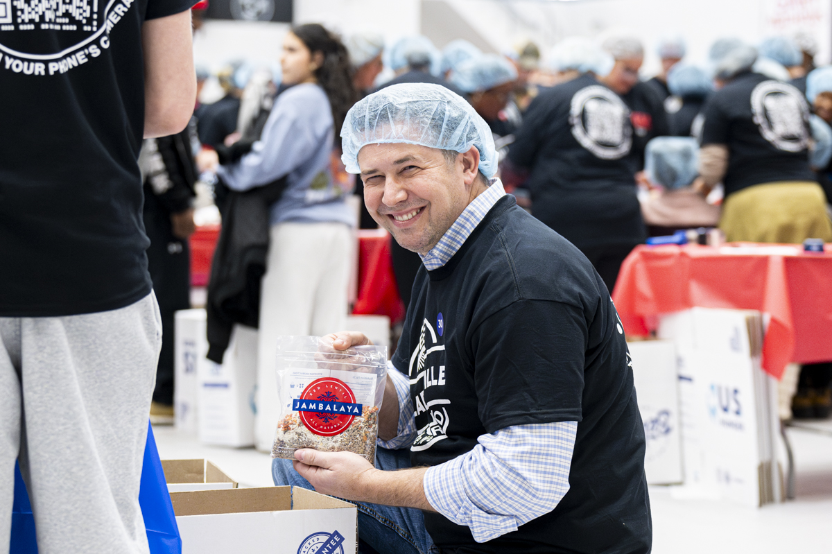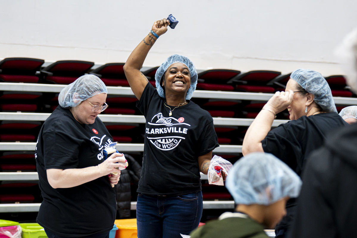 12:59pm January 25, 2025 The very first Clarksville Feeds The World Outreach Initiative meets it’s goal of 500,000 meals packed. (Jeff Danault)