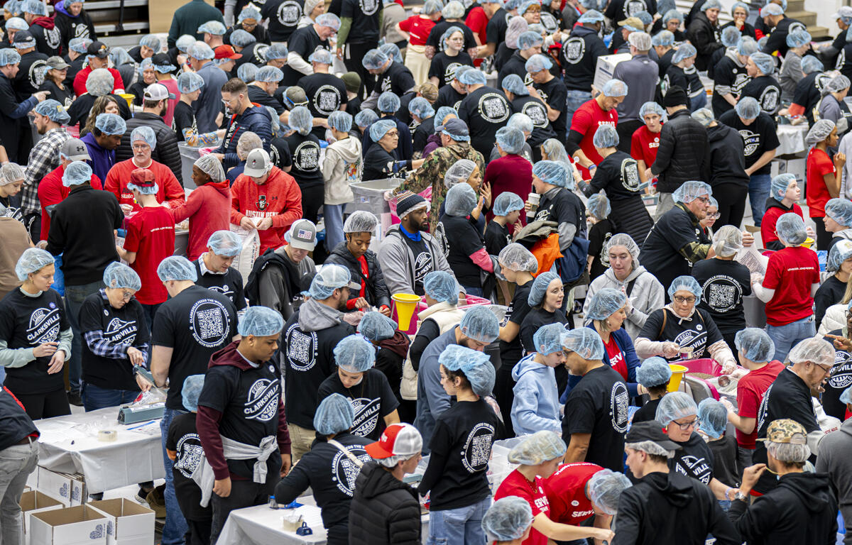 Hundreds of volunteers joined in to help Clarksville Feeds the World, a new outreach initiative out to pack 500,000 meals to send to those in need around the globe.