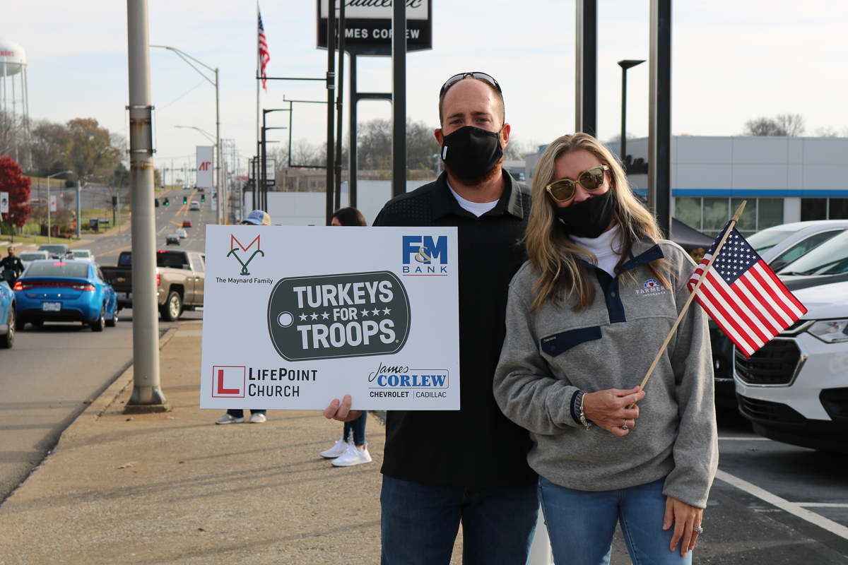 Organizers were to start at 8 a.m., but with traffic backed up on College Street, they decided to go early at 7:30. The final turkeys were handed out at 12:40 p.m., according to Charlie Koon, VP/Director of Corporate & Military Business Development at F&M Bank, who helped start the project in 2018.
