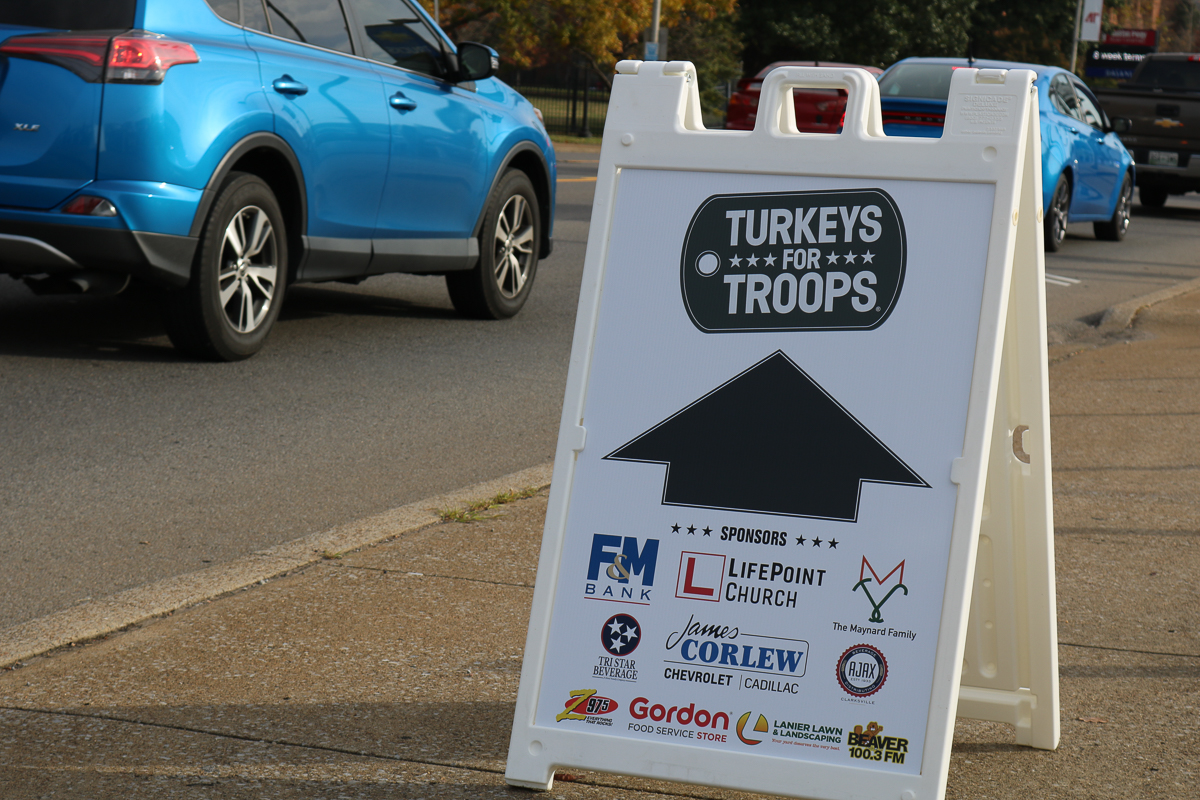 CLARKSVILLE, Tenn. (CLARKSVILLENOW) – Hundreds of military families lined the blocks of downtown Clarksville on Saturday morning for the Turkeys for Troops giveaway, some arriving as early as 5:30 a.m. for the 8 a.m. event.