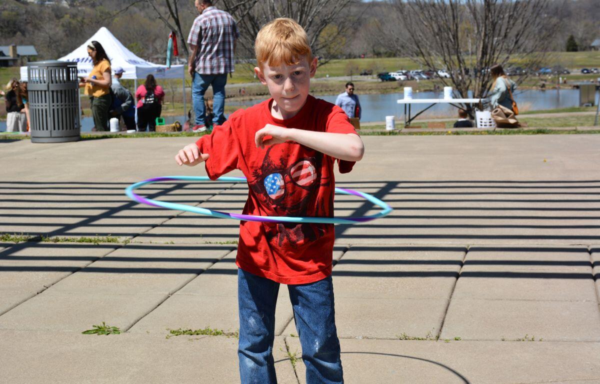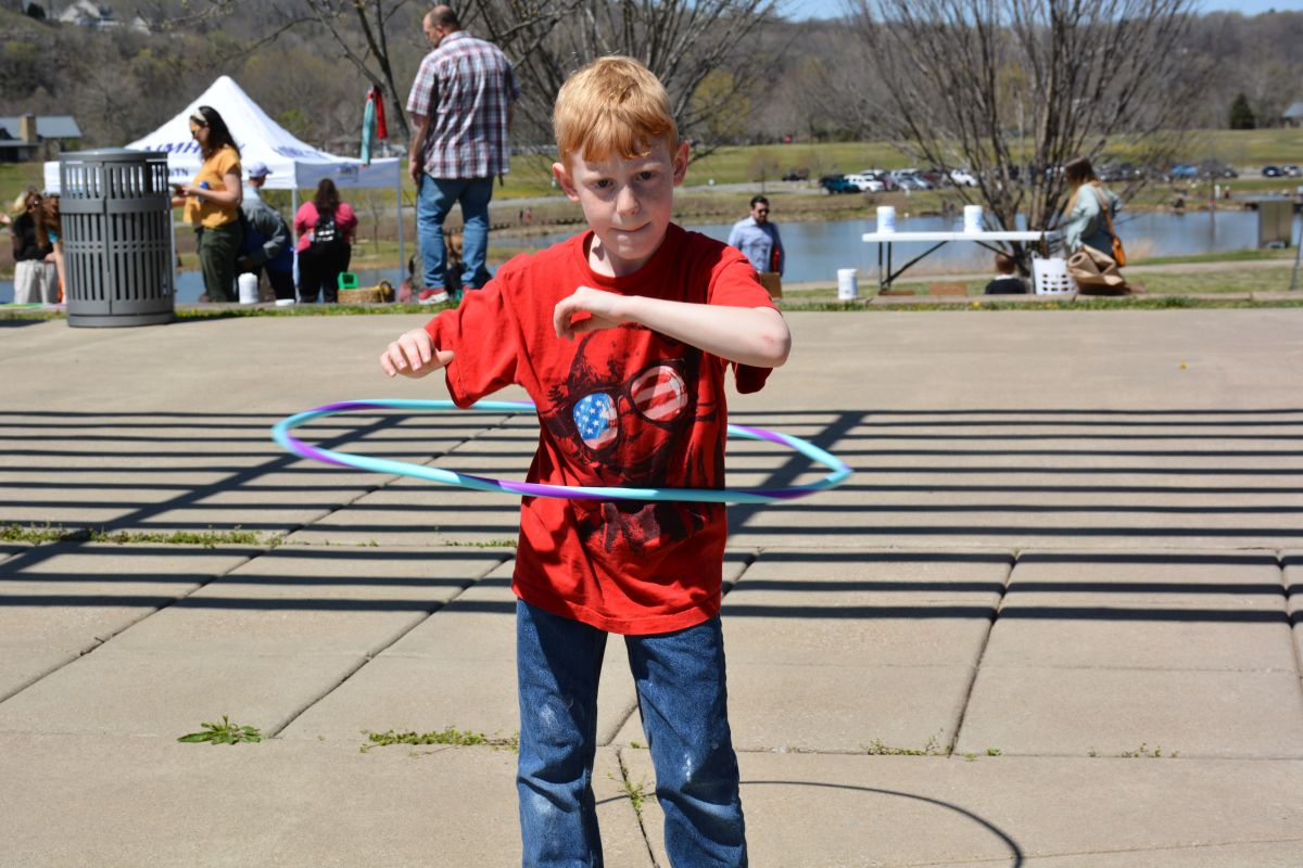 A youngster has fun with a hula hoop at the 5th Annual Day of Play on, Apr. 3, 2022. (Lee Erwin).
