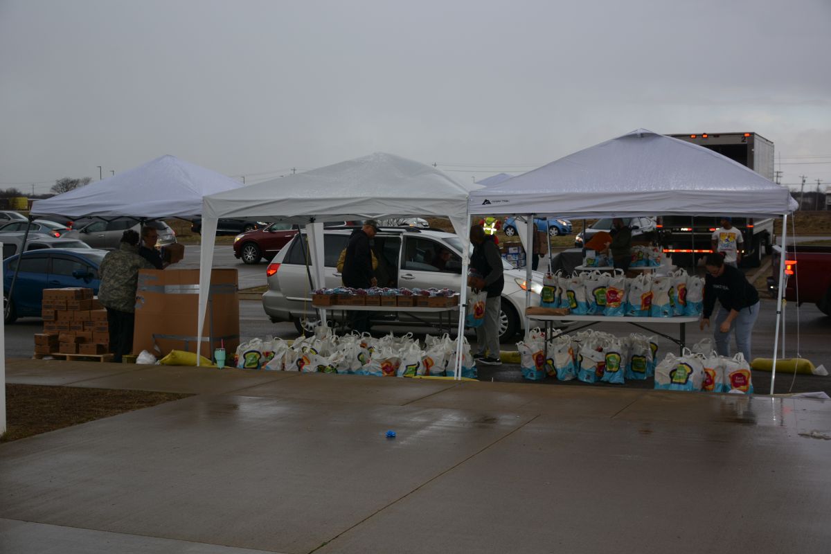 Dozens of volunteers braved the wind and the rain to pass along the food packages donated by the two nonprofit organizations. Scott Lucas, director of operations for One Generation Away, said they are a food ministry based out of Franklin, Tennessee.
