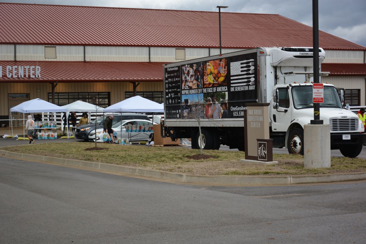 OAK GROVE, KY (CLARKSVILLE NOW) – Thursday was a special day for close to 700 hundred families of service members as they lined up in their vehicles at the Oak Grove Equestrian Center to accept free boxes and bags of food from Fort Care and One Generation Away.