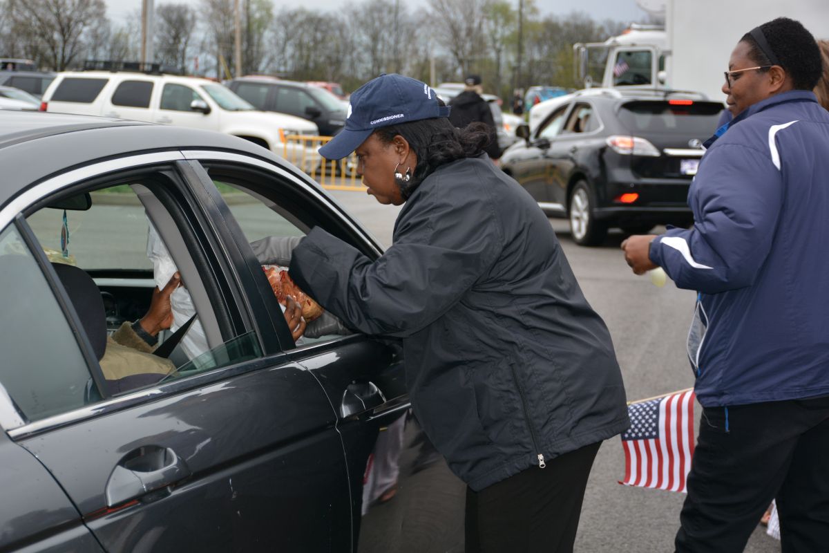 Volunteers handed out more than 600 hams to military service members for Easter during Hams for Heroes in Oak Grove, KY. on Apr. 6, 2023. (Lee Erwin)