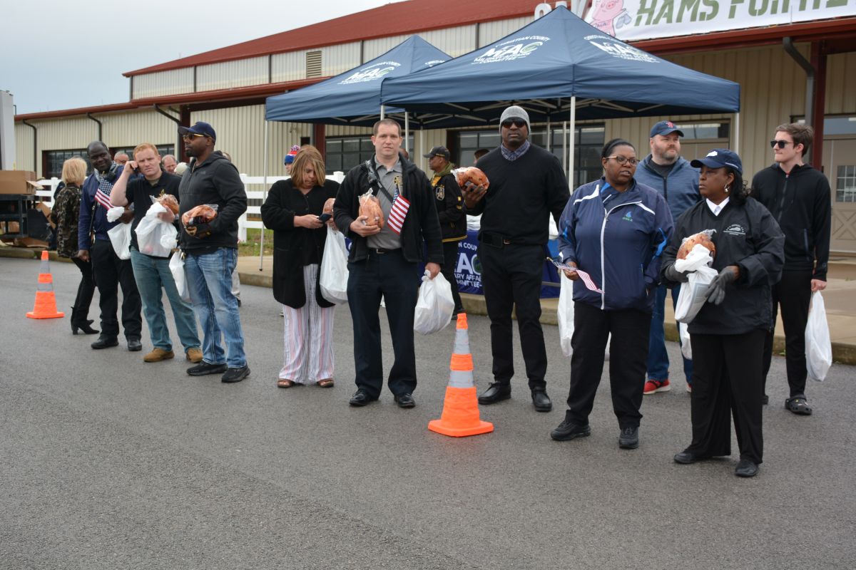 OAK GROVE, KY (CLARKSVILLE NOW) – The Christian County Chamber of Commerce Military Affairs Committee hosted Hams for Heroes Thursday at Oak Grove Racing, Gaming & Hotel. Hundreds of hams were handed out to active-duty military.