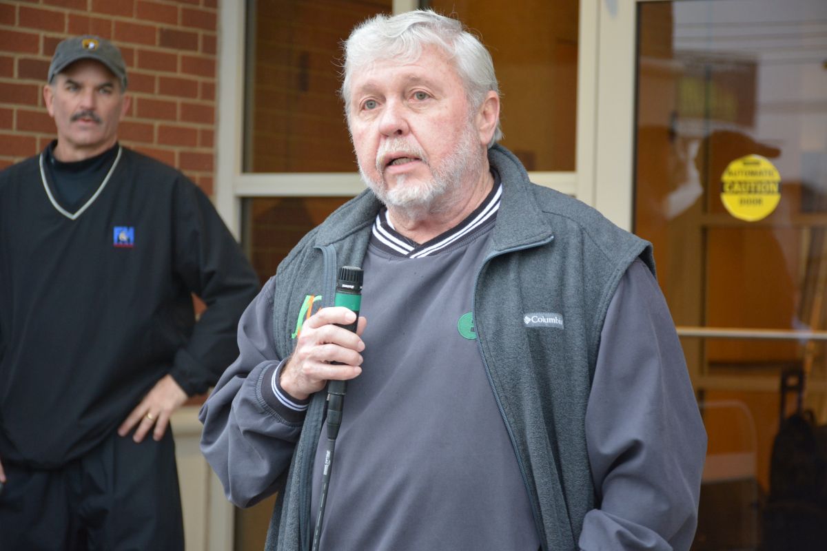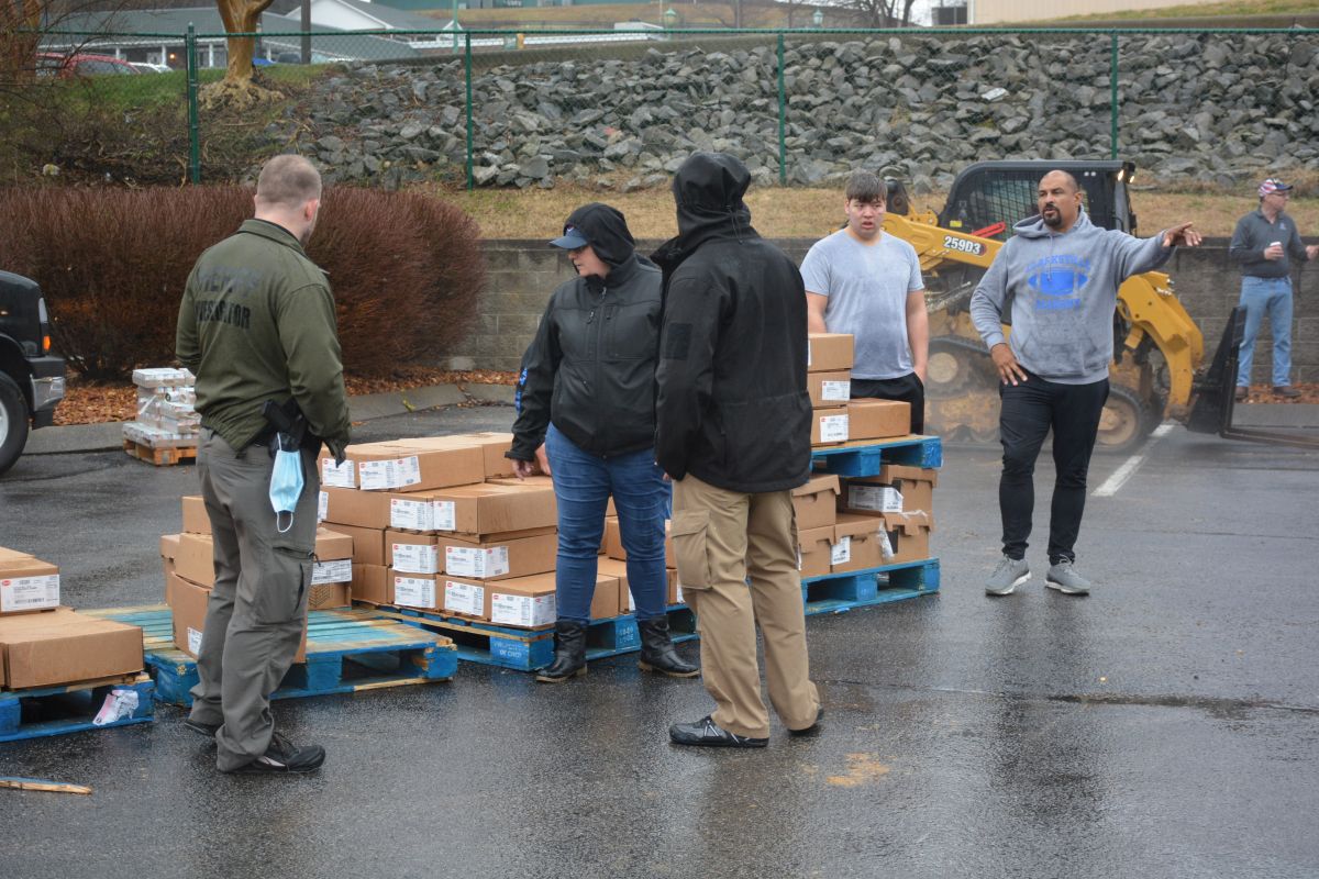 Joe Maynard, one of the organizers of Operation Honor speaks to volunteers handing out food and other essentials to military and veteran families during the drive-thru event, on Feb. 2, 2022 (Lee Erwin)