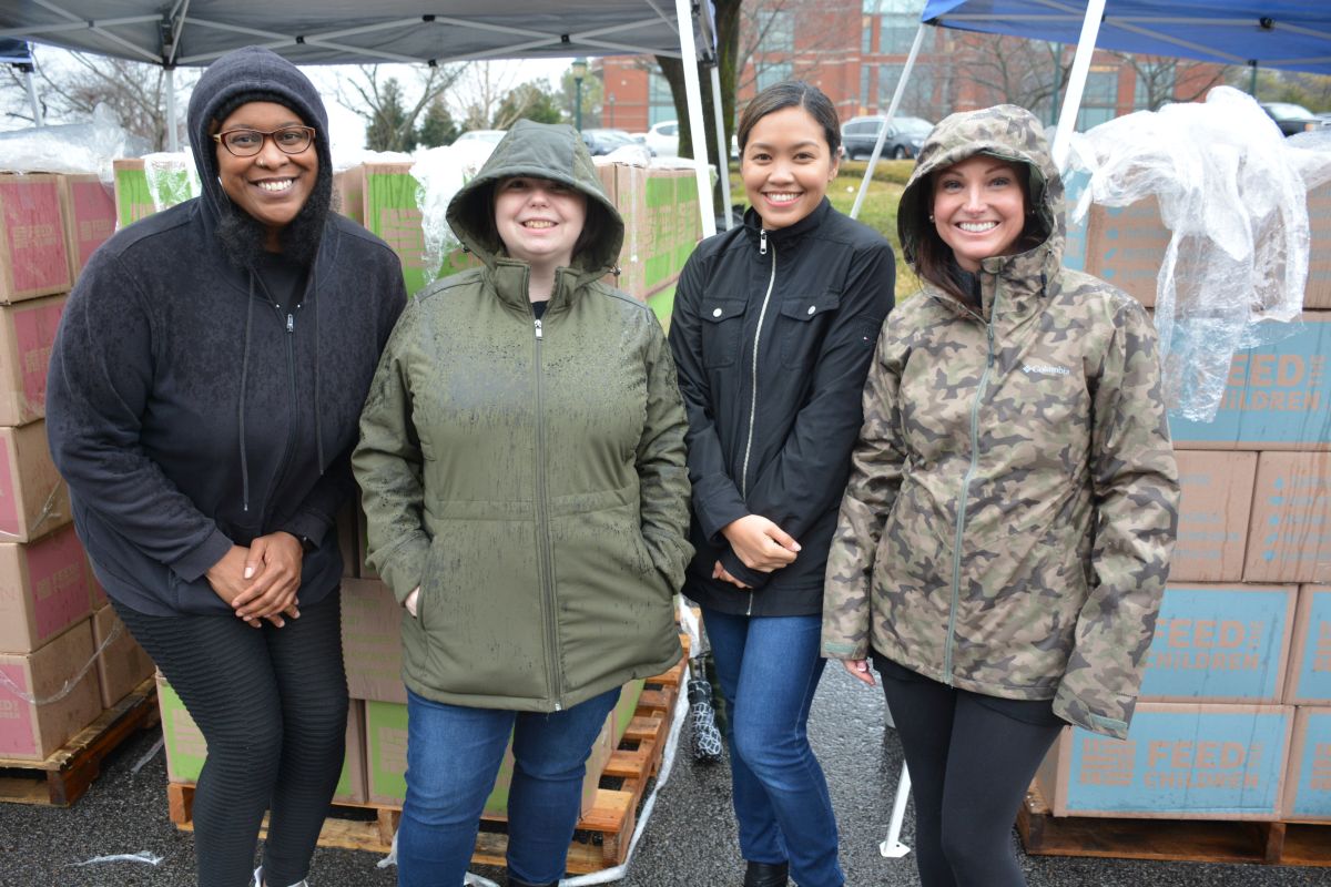 Volunteers gather before handing out food and other essentials to military and veteran families during the drive-thru event at Operation Honor, on Feb. 2, 2022 (Lee Erwin)