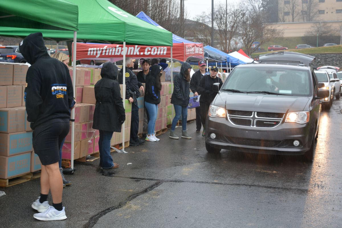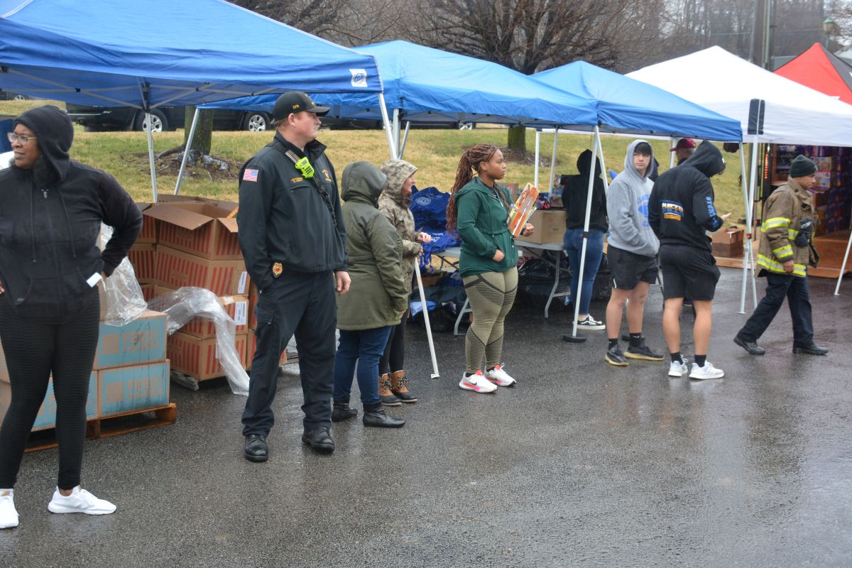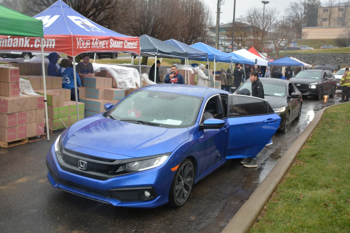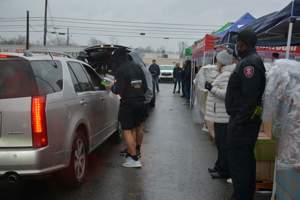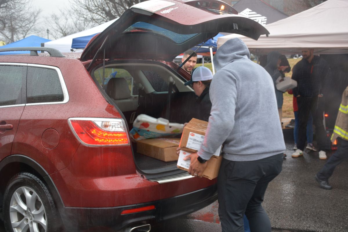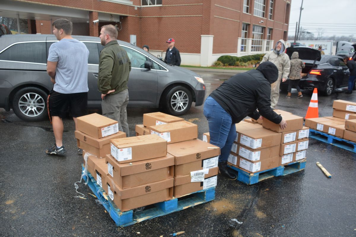 Volunteers hand out food and other essentials to military and veteran families during the drive-thru event at Operation Honor, on Feb. 2, 2022 (Lee Erwin)
