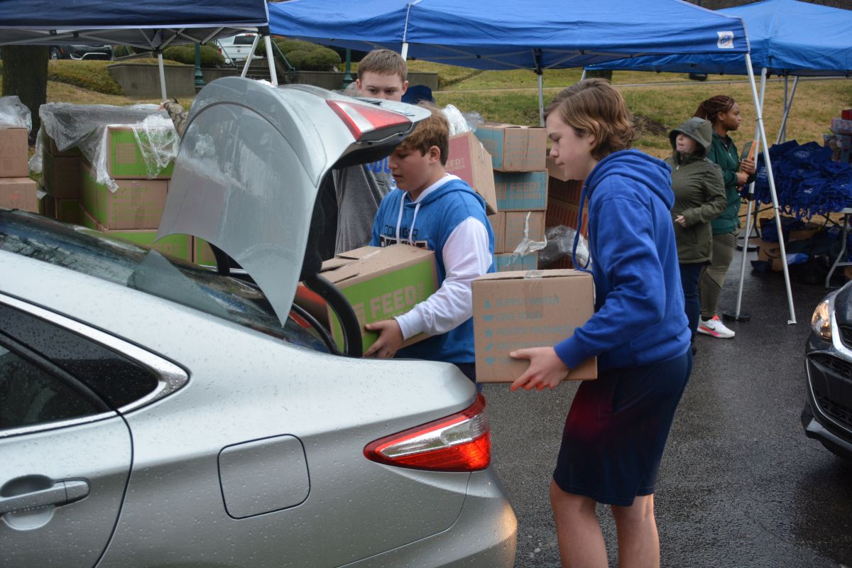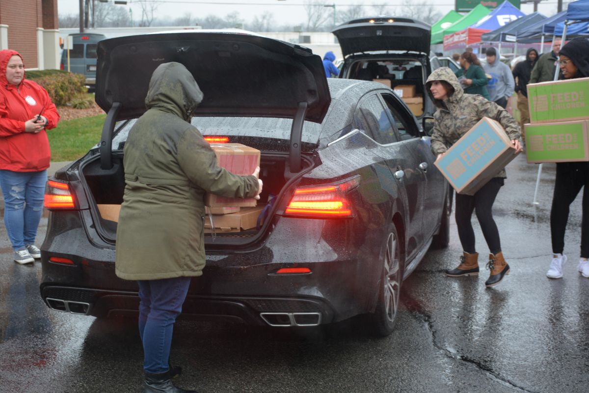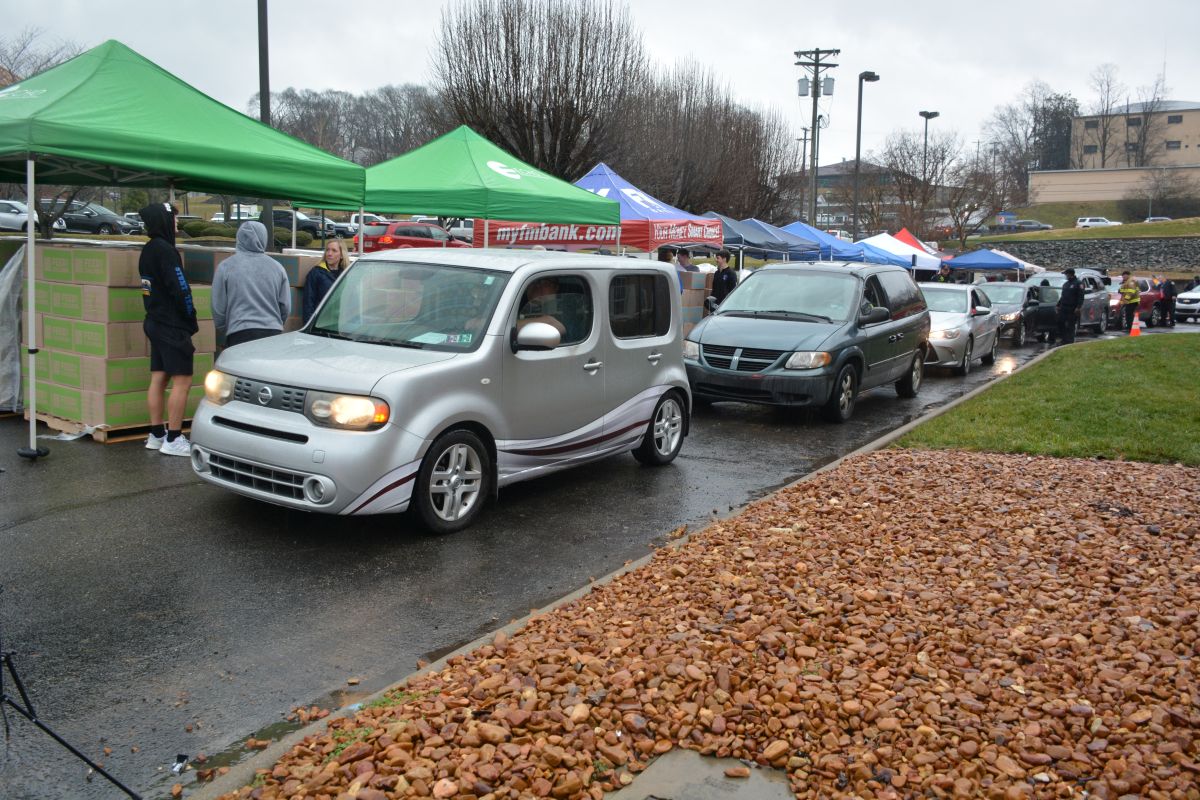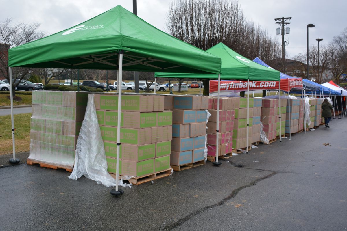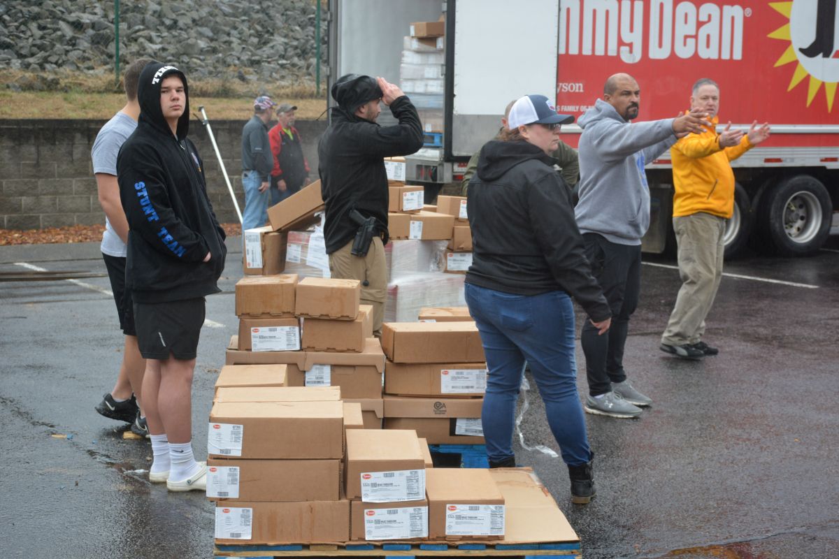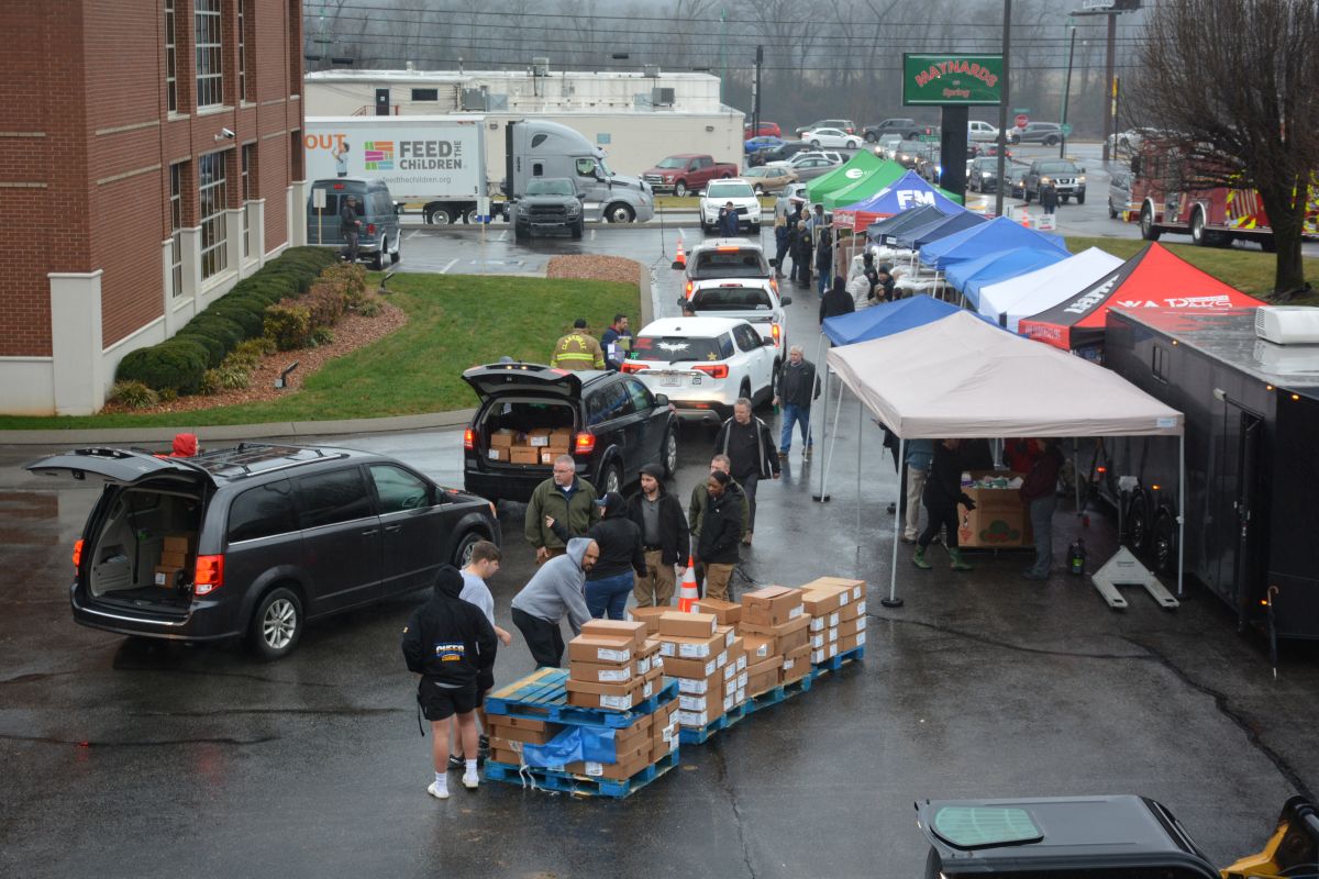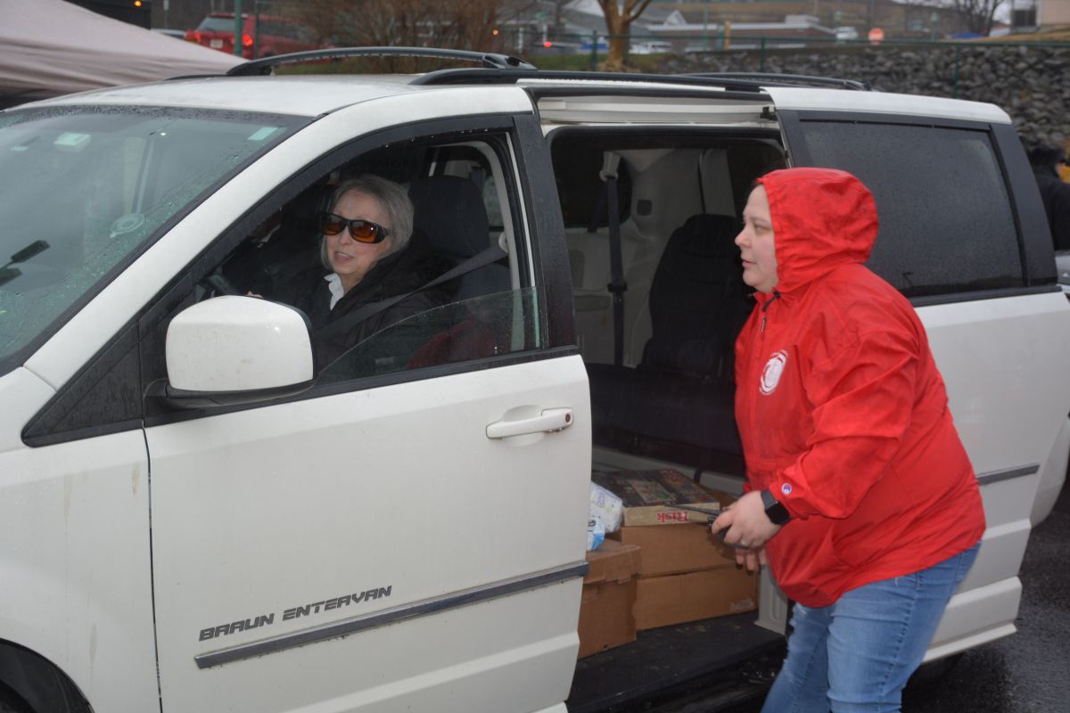 Volunteers hand out food and other essentials to military and veteran families during the drive-thru event at Operation Honor, on Feb. 2, 2022 (Lee Erwin)