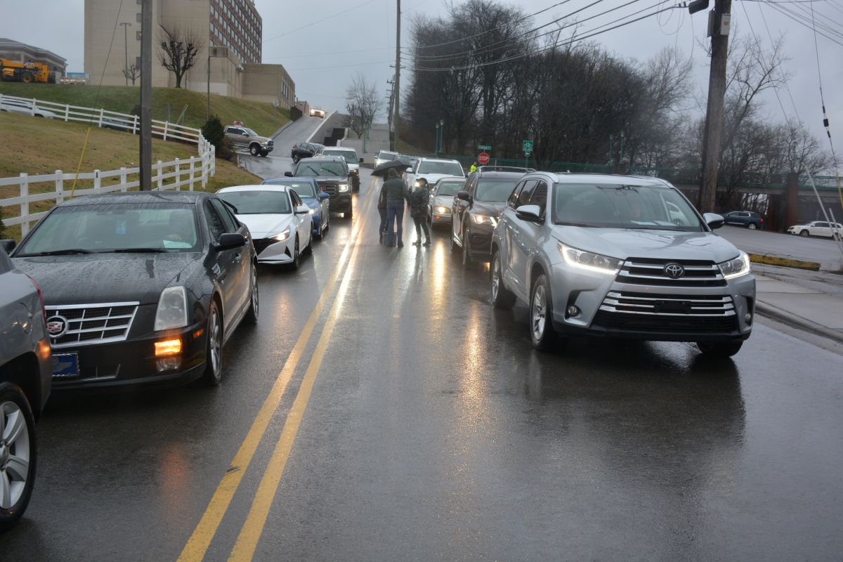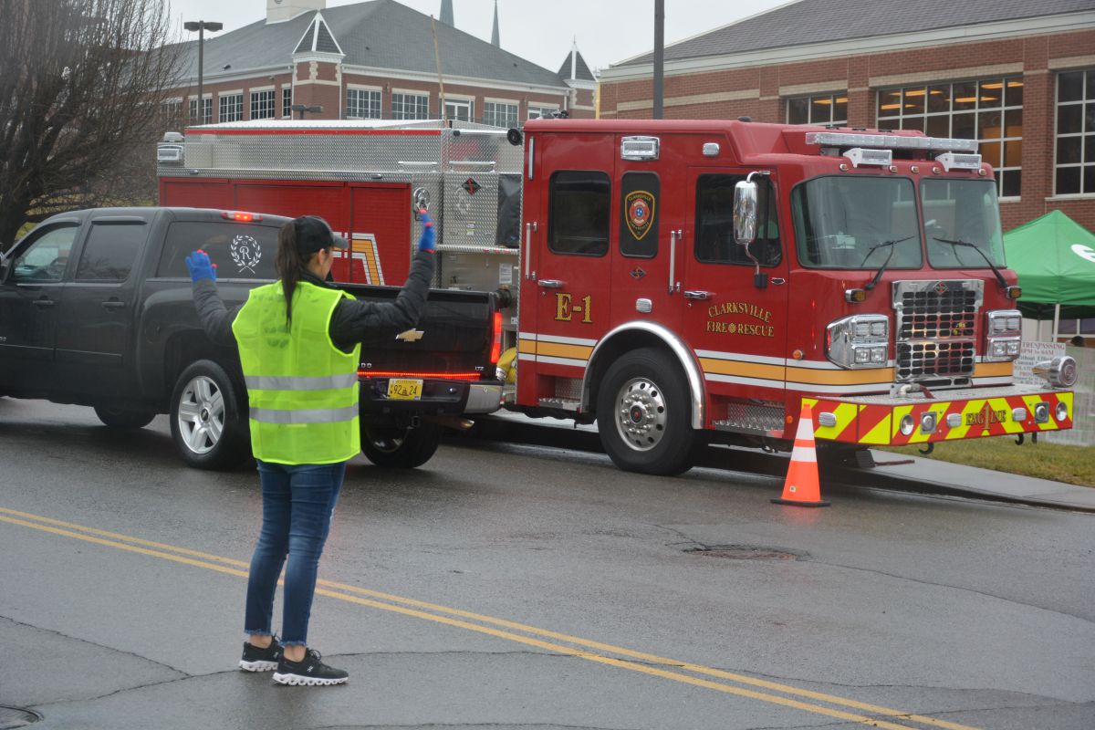A volunteer directs traffic during the drive-thru event at Operation Honor, on Feb. 2, 2022 (Lee Erwin)