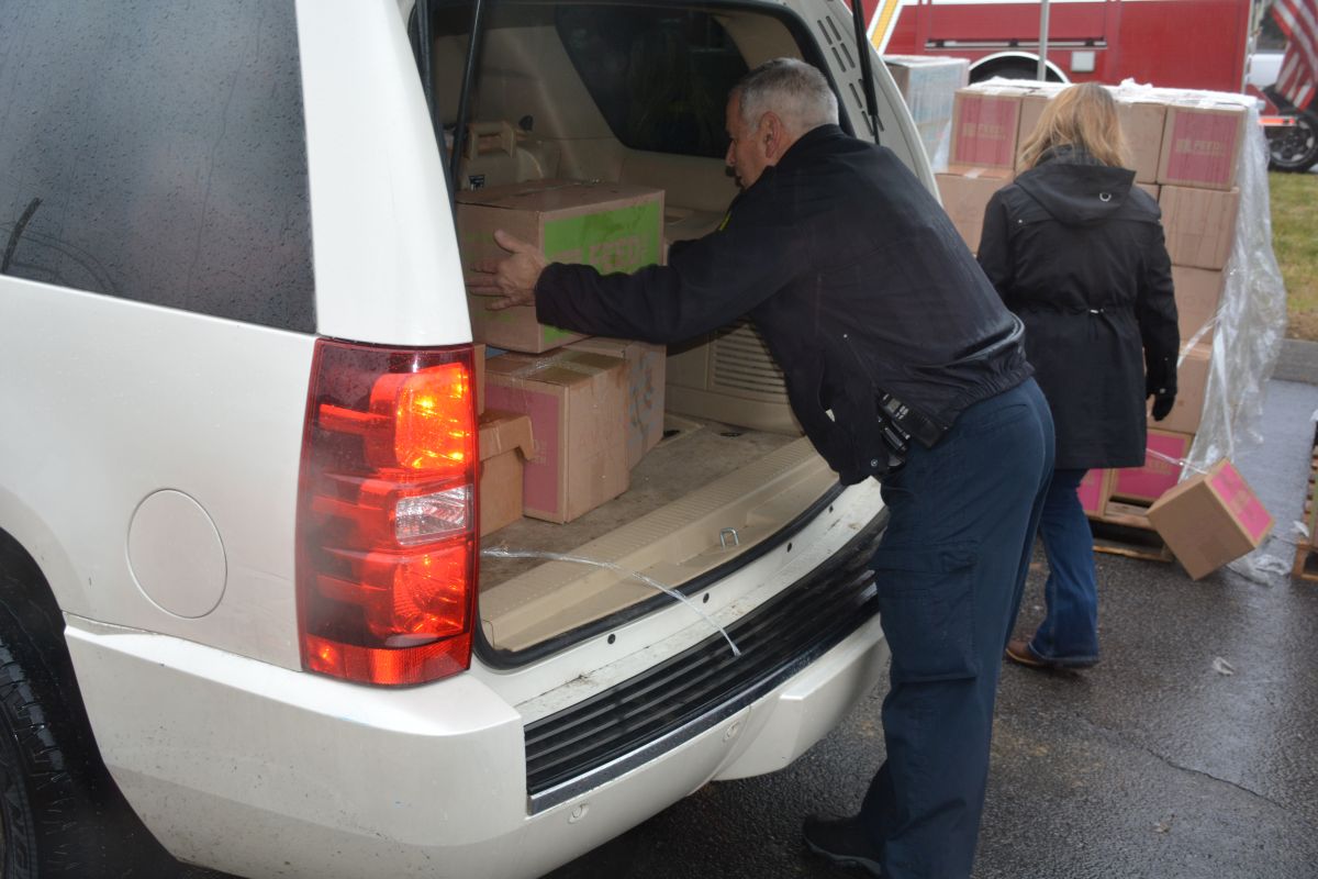 Close to 40 volunteers handed out food, dry goods, toiletries, personal care items and toys for children to more than 717 military and veteran families during the drive-thru event.
