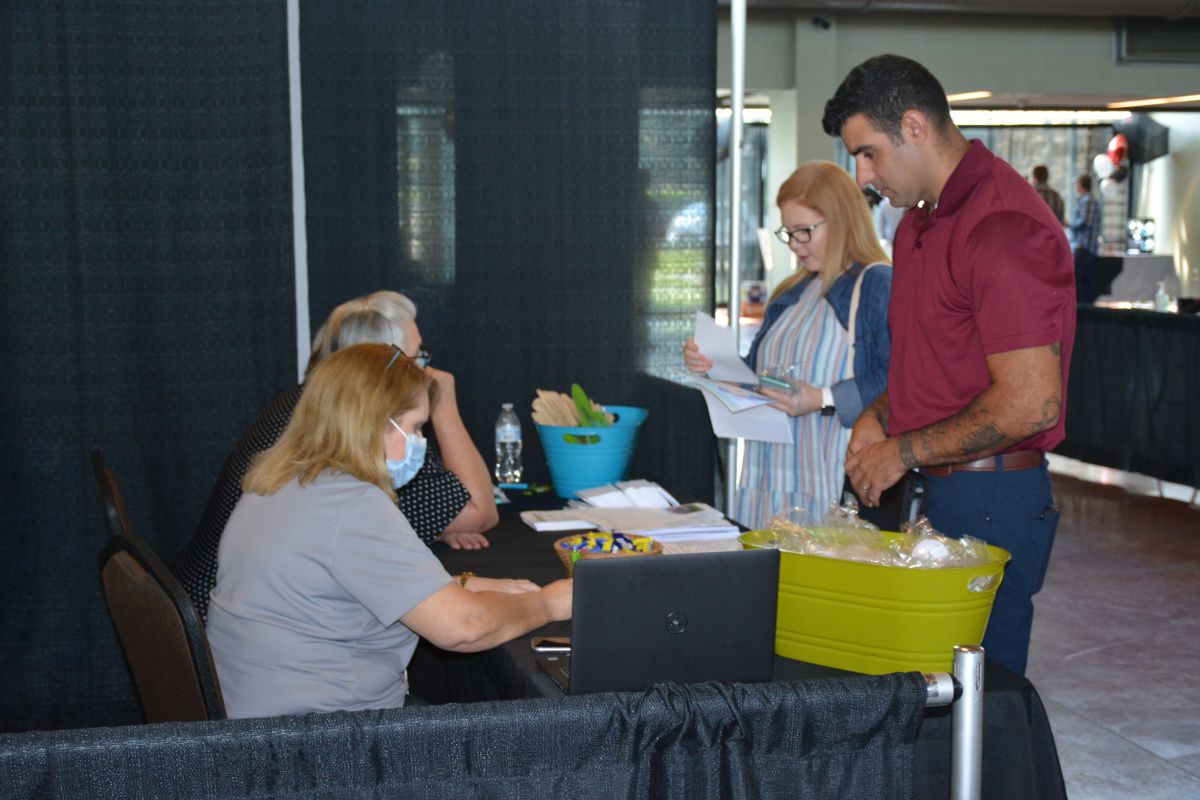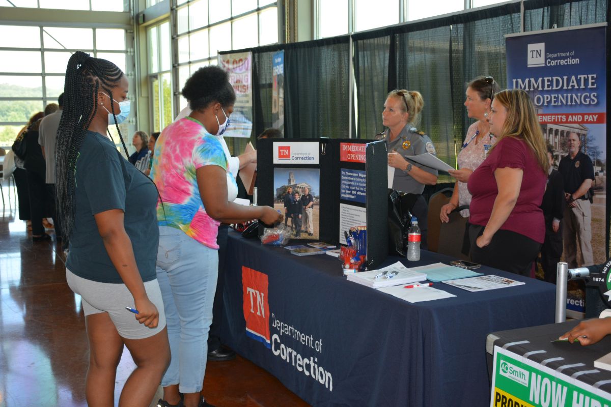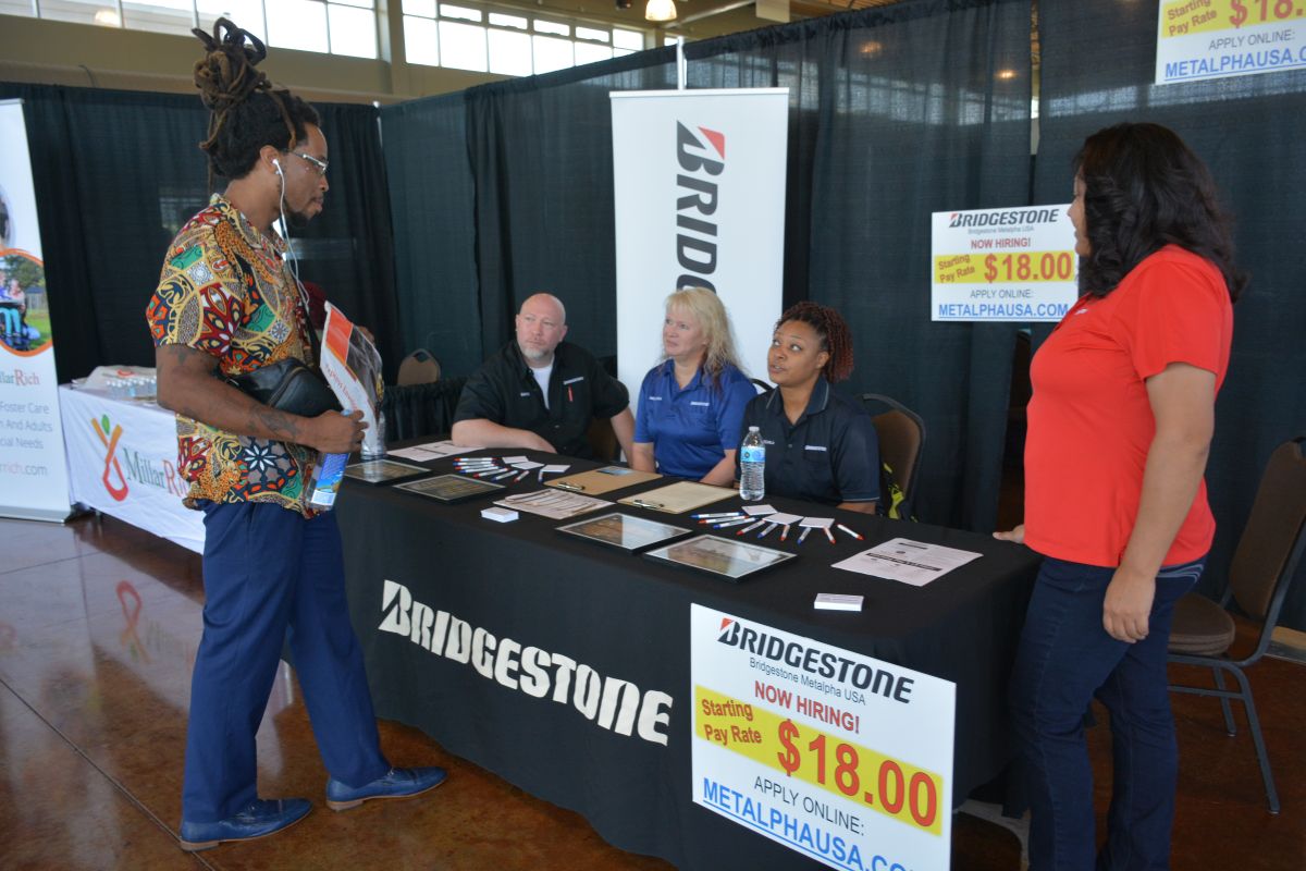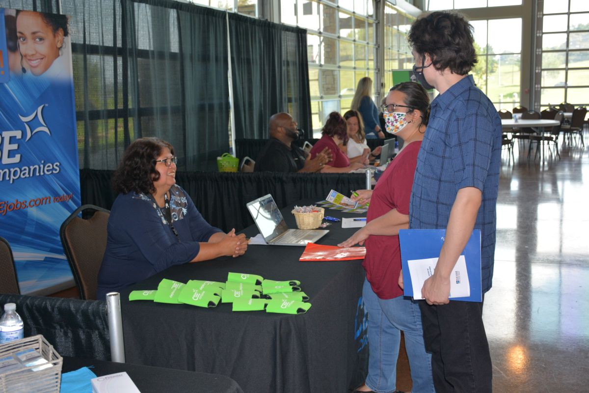 Job Seekers talk with businesses looking to hire employees at the 5-Star Media Group Mega Job Fair on Tue August 24 at the Wilma Rudolph Event Center (Lee Erwin).