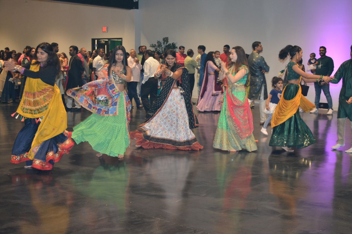 Dancers take part in the Gujarati cultural dance of garba at the Navratri Hindu festival celebrated in honor of divine femininity at The Emerald in Clarksville on Oct. 13, 2023. (Lee Erwin)