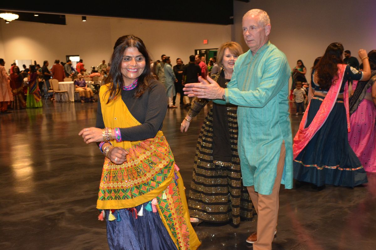 The festival was filled with colorful cultural clothing and music, along with a potluck of food and offerings. At some point just about everyone, young and old alike, participated in the Gujarati cultural dance of Garba. The dance was performed in a circle around a lit lamp called the garba deep.