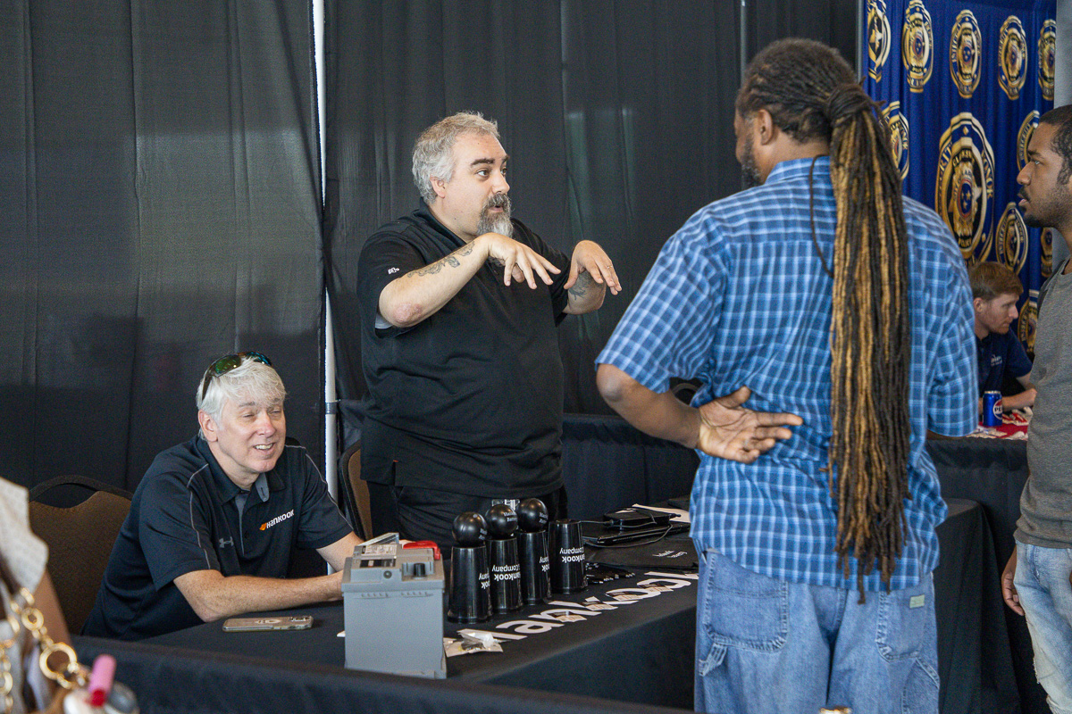 Chris Smith and Kyle King at the Mega Job Fair at Wilma Rudolph Event Center on August 13, 2024. (Wesley Irvin)