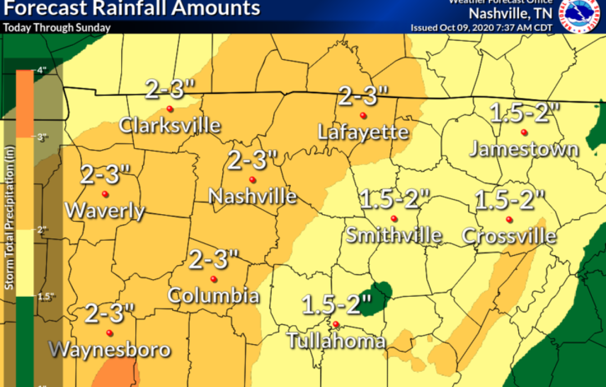 The remnants of the storm should bring 2 to 3 inches of rain to Clarksville through the weekend, according to the National Weather Service in Nashville.