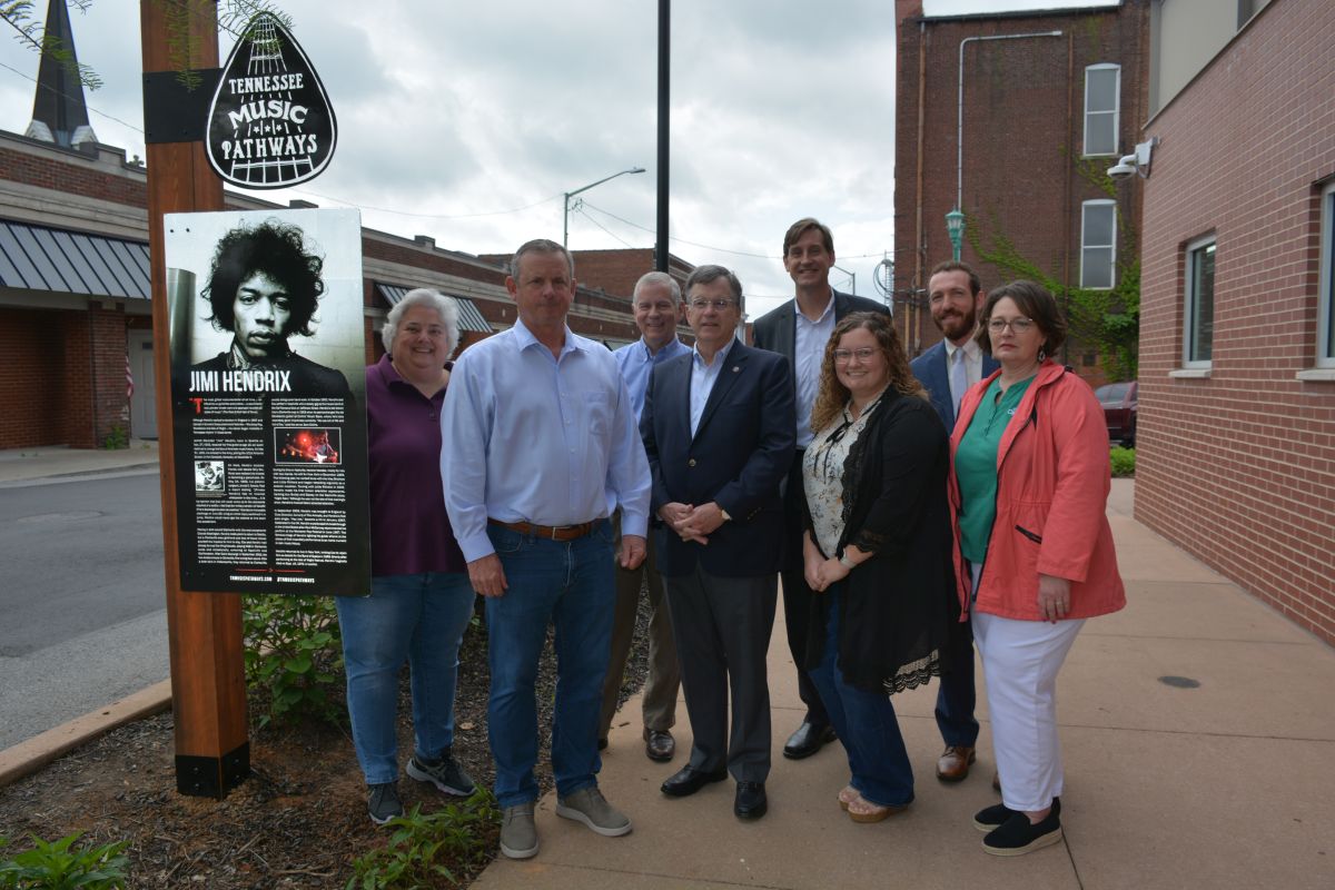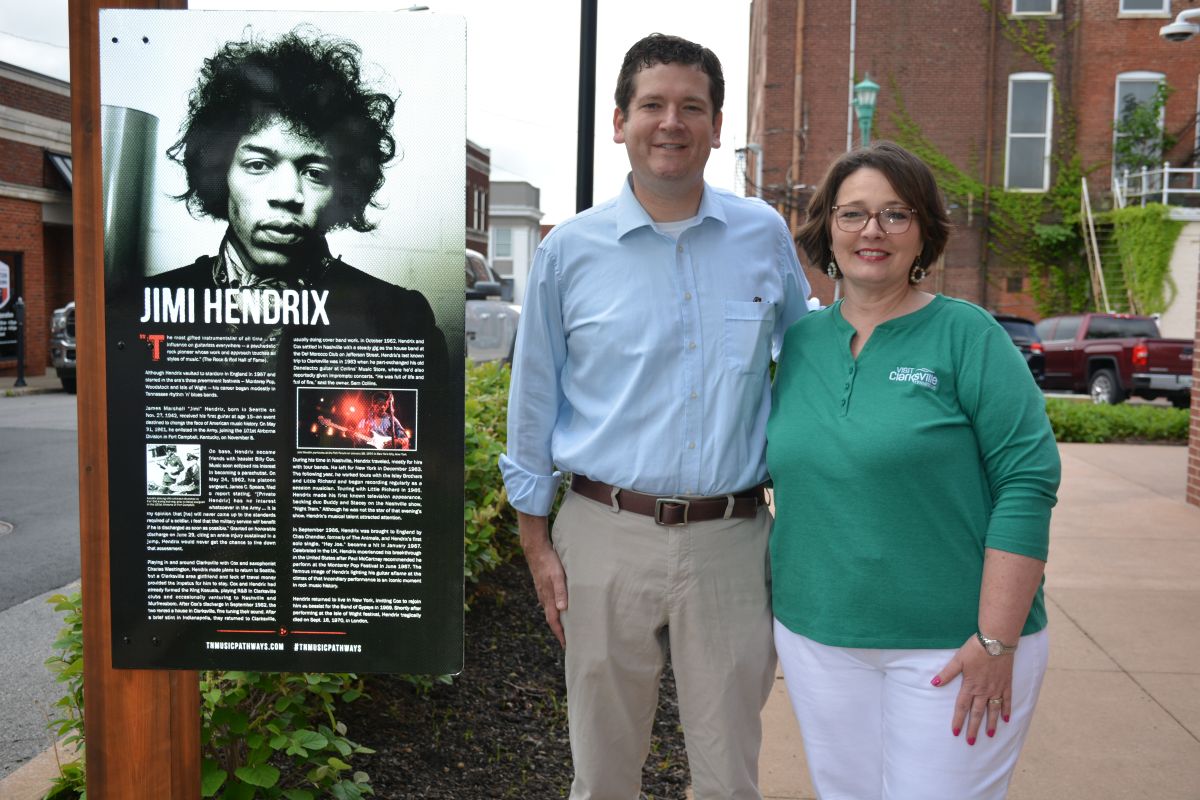 CLARKSVILLE, TN (CLARKSVILLE NOW) – In celebration of National Travel and Tourism Week, Clarksville-Montgomery County and the state of Tennessee honored Jimi Hendrix and Dunbar Cave State Park by installing “Tennessee Music Pathways” markers.