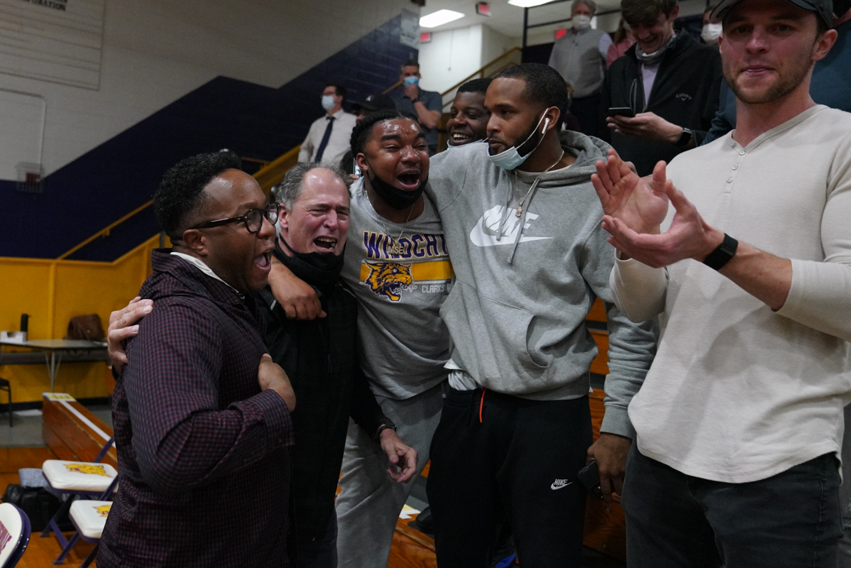 “We did make one major change the last four minutes of the game. We decided to put JJ (Wheat) on their Division I guard and he didn’t score again. Then we nailed our free throws to spread the lead. I still wasn’t comfortable until I saw three seconds on the clock and we were up by six.”
