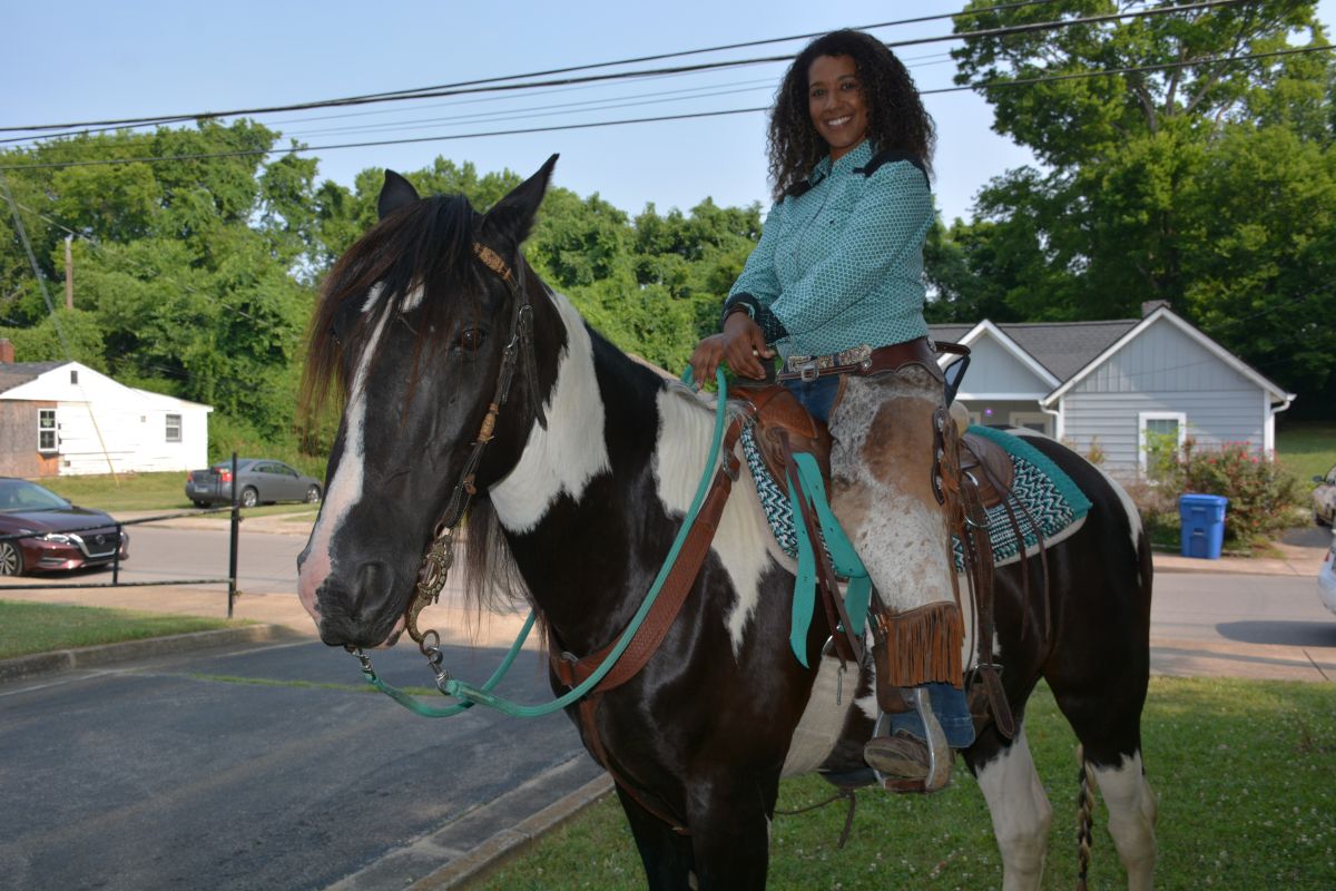 Elaini Matvafos and her friend Bam ready to ride in Clarksville’s 3rd Annual Juneteenth Festival Parade on Jun. 17, 2023. (Lee Erwin)