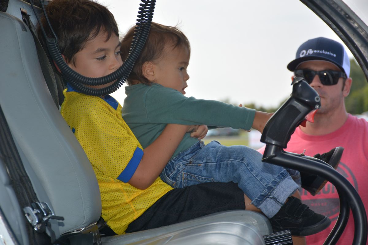 Kids enjoy sitting inside one of the helicopters at Just Plane Fun Days at the Clarksville Regional Airport on, Sep. 24, 2022. (Lee Erwin).