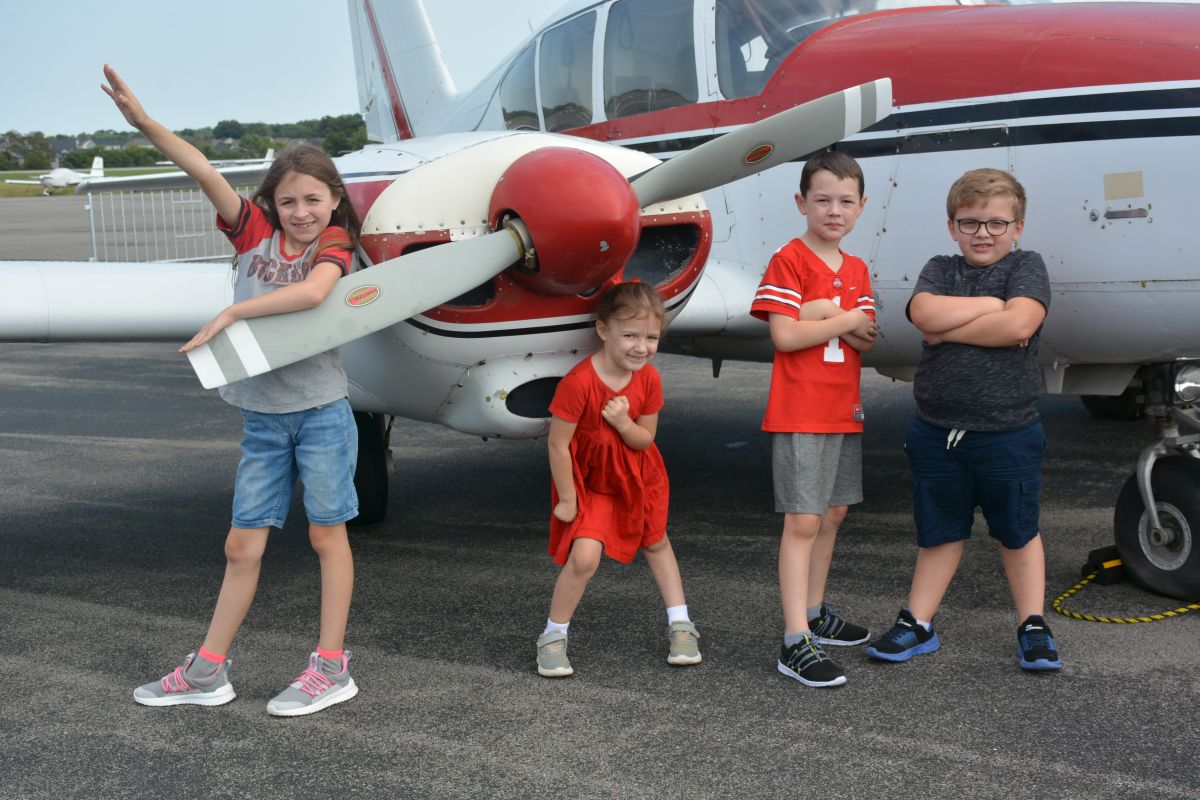 Kids pose with one of the airplanes at Just Plane Fun Days at the Clarksville Regional Airport on, Sep. 24, 2022. (Lee Erwin).