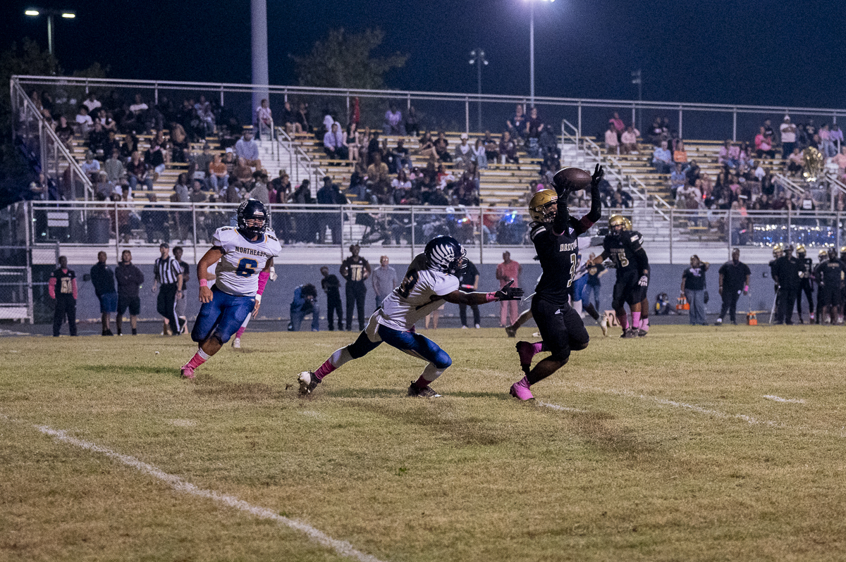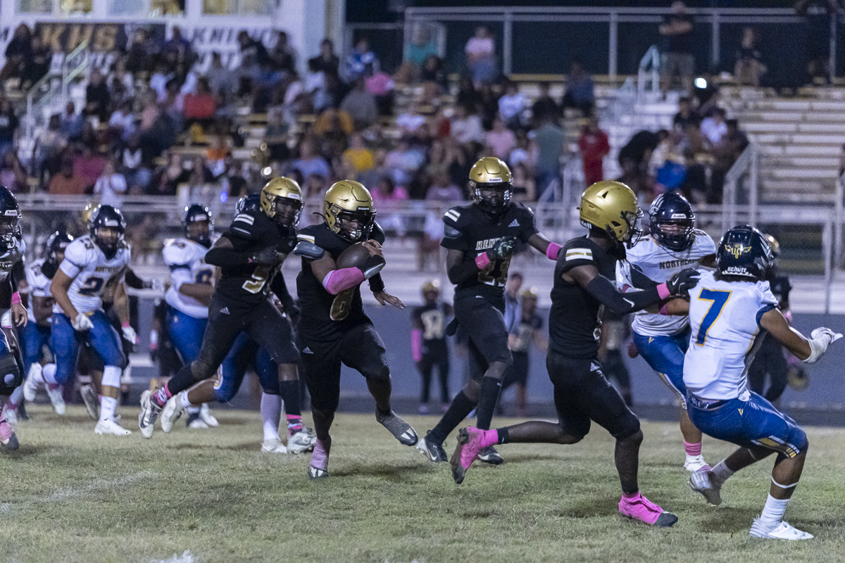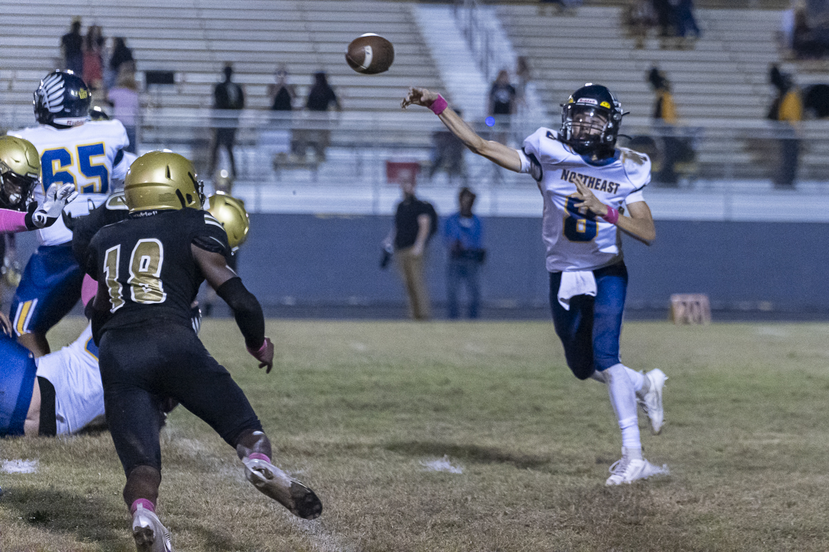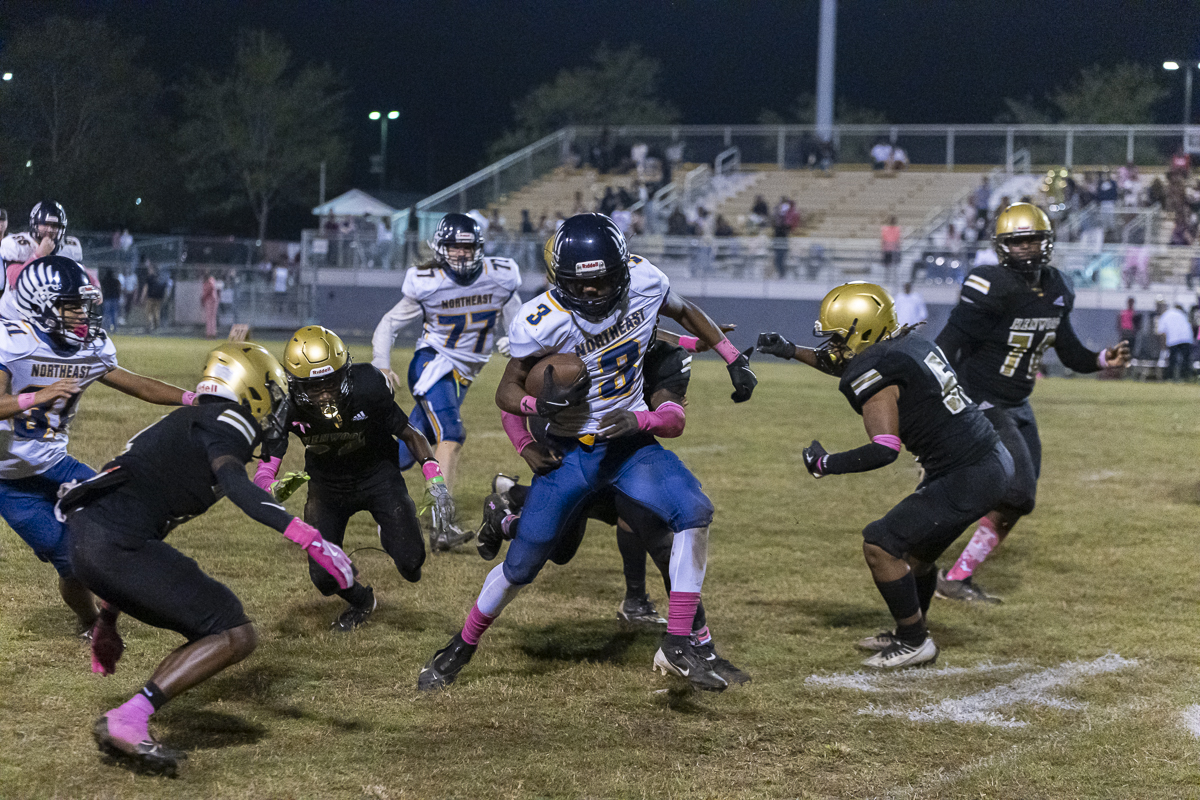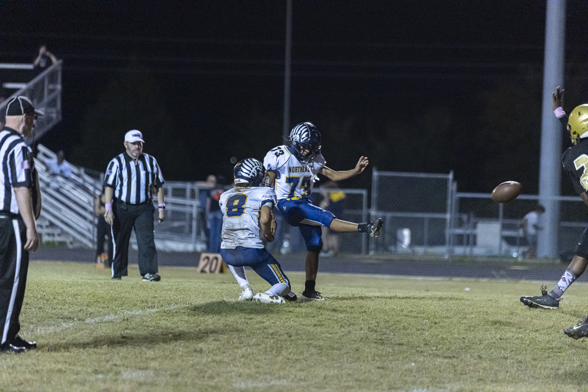 Early on, Kenwood went to the air, with quarterback Jacoby Cox connecting with receiver Jayde Davis on a deep ball for the night’s first score. Cox ran one in himself to add to the lead, and the Knights tacked on one more before the half after Northeast got on the board, making it 18-6 at the break.