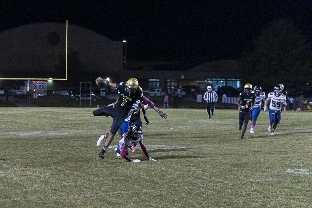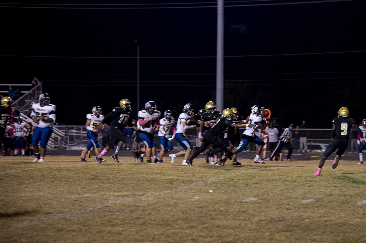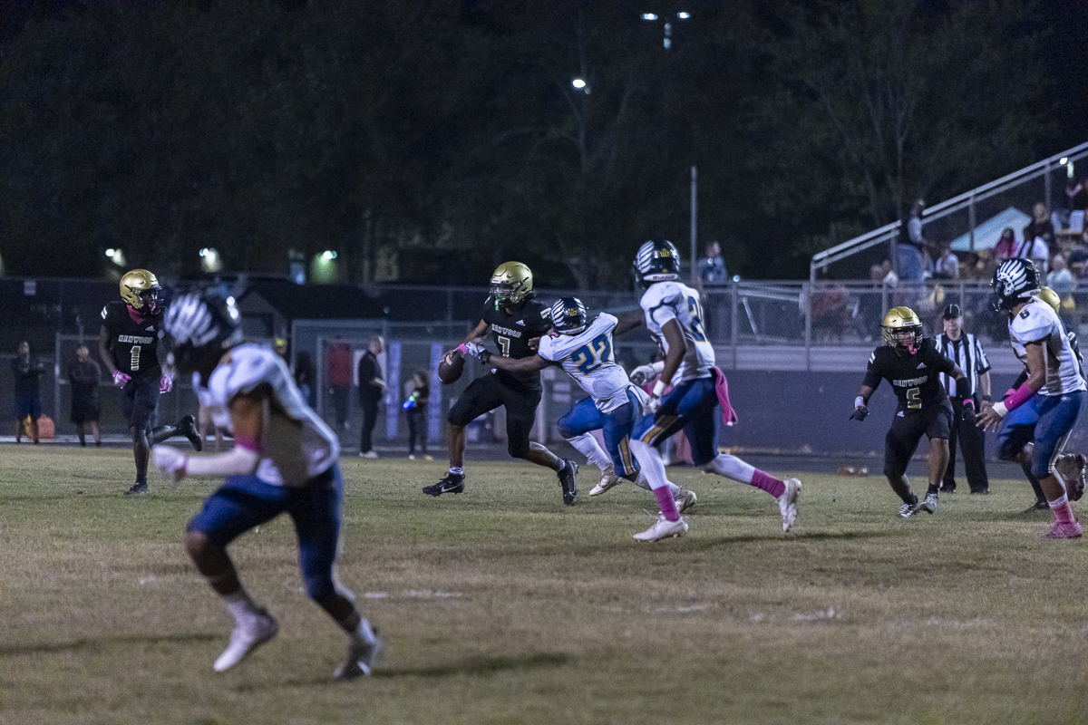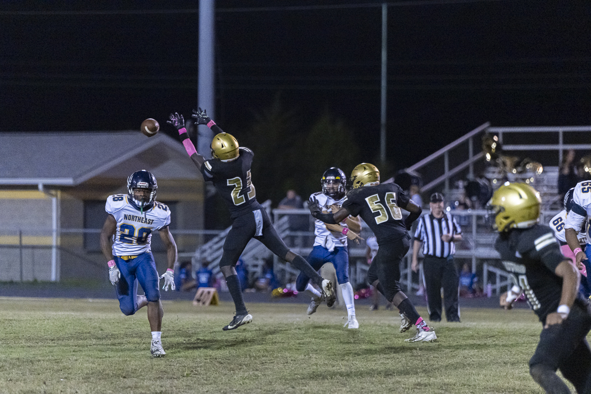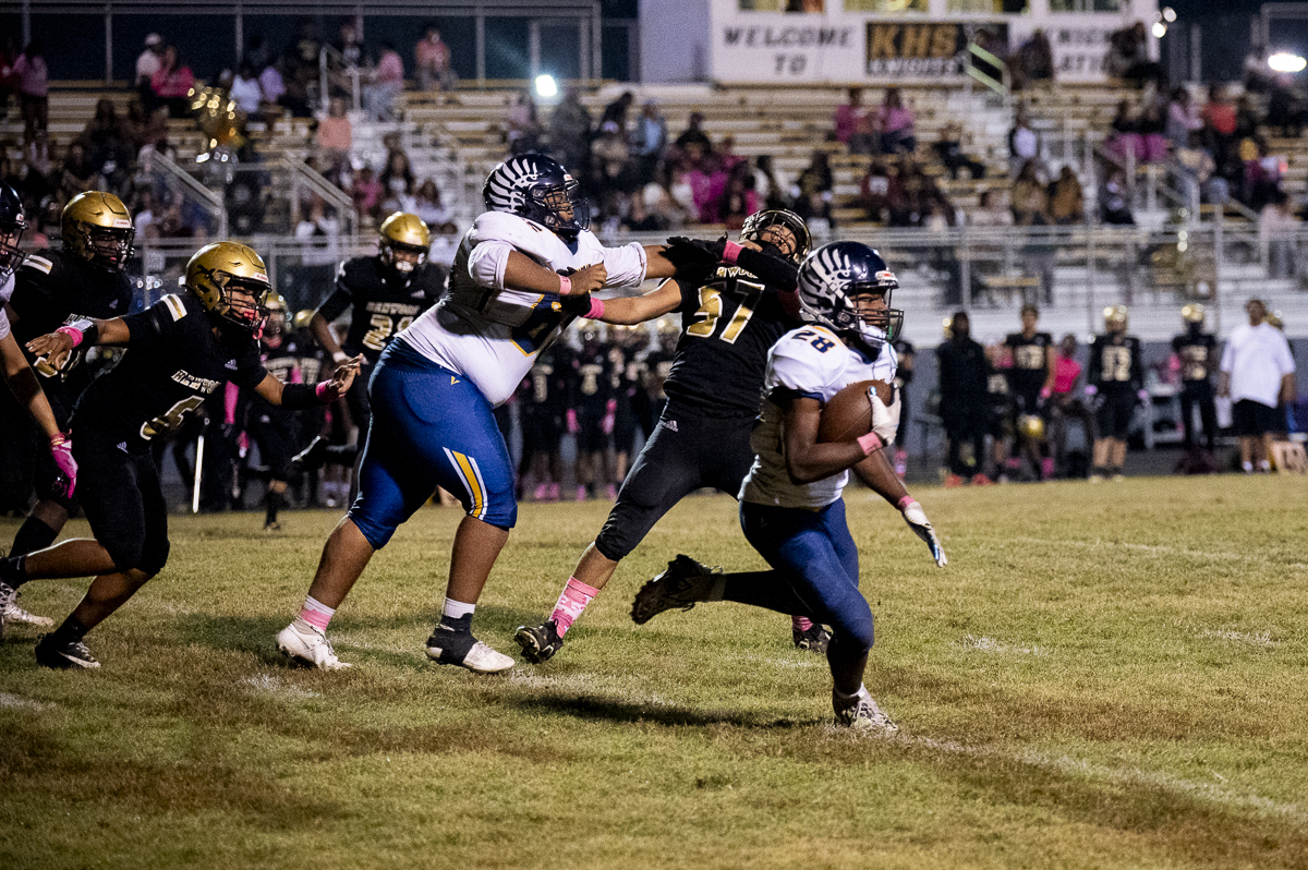 Early on, Kenwood went to the air, with quarterback Jacoby Cox connecting with receiver Jayde Davis on a deep ball for the night’s first score. Cox ran one in himself to add to the lead, and the Knights tacked on one more before the half after Northeast got on the board, making it 18-6 at the break.