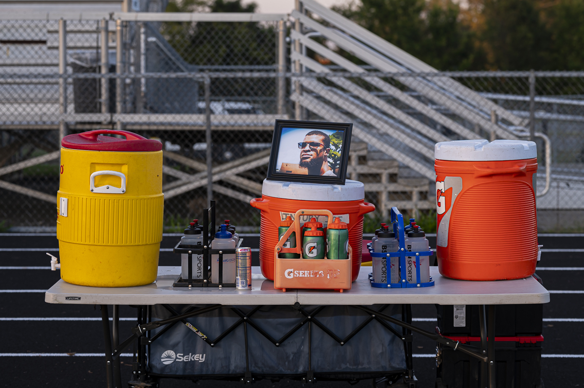 A tribute to Northeast High School assistant coach Tyree Vaughn, who passed away this week, during the Kenwood game on Oct. 4, 2024. (Jeff Danault)