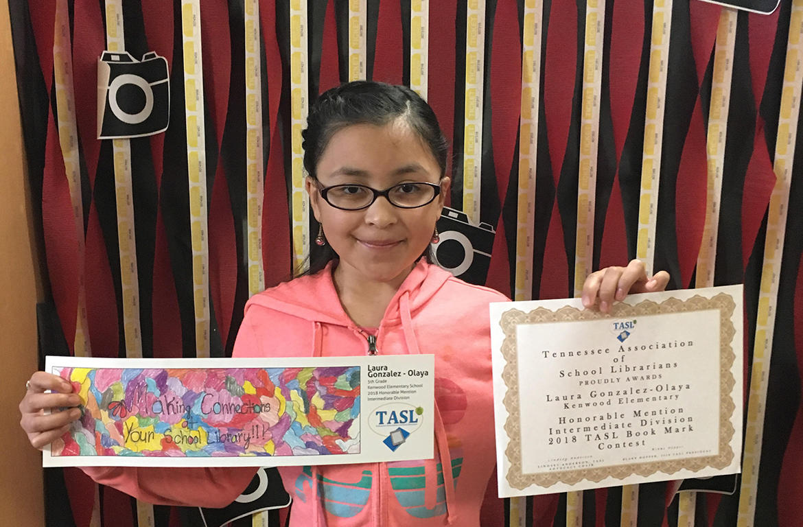 CLARKSVILLE, Tenn.- (CLARKSVILLENOW) Kenwood Elementary 5th grader Laura Gonzalez-Olaya received 2nd place out of 170 students from across Tennessee for an original design in the annual Tennessee Association of School Librarians bookmark contest.