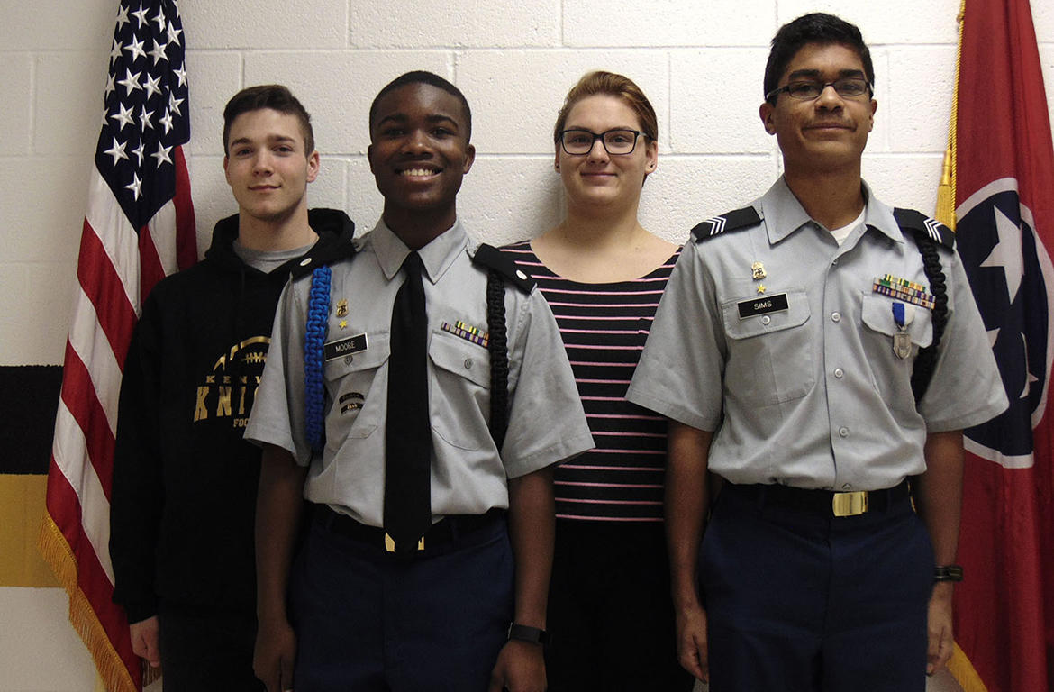 Kenwood High School JROTC Academic Team composed of Justin Bair, Orlando Moore, Alexis Jordan, and Phoenix Sims.
