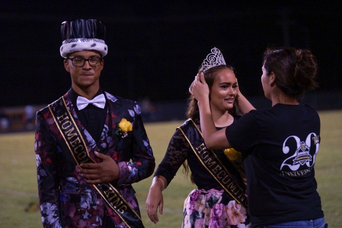 During a halftime ceremony, Taylor Mathews and Amber Gallegos were named the 2017 Homecoming King and Queen.