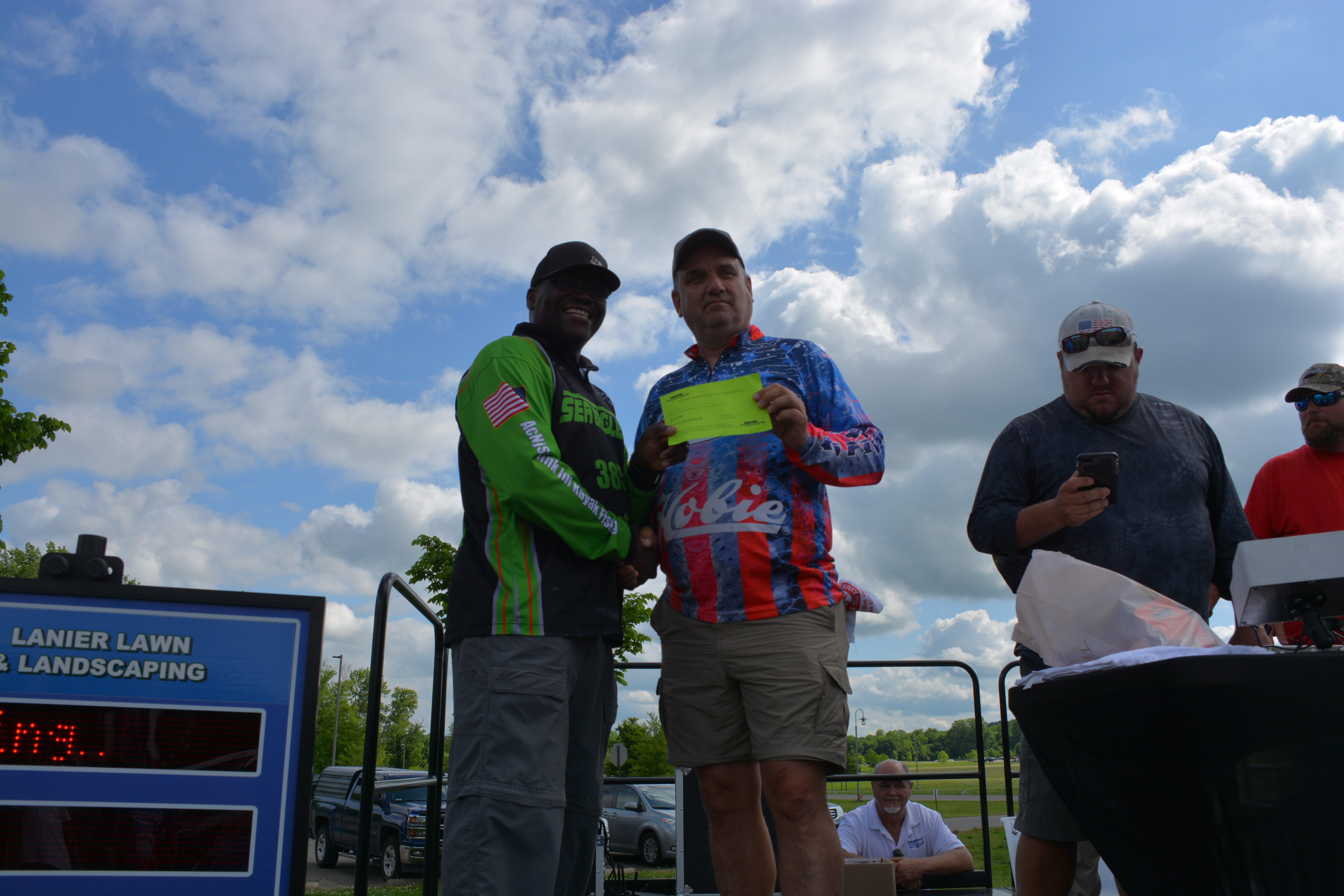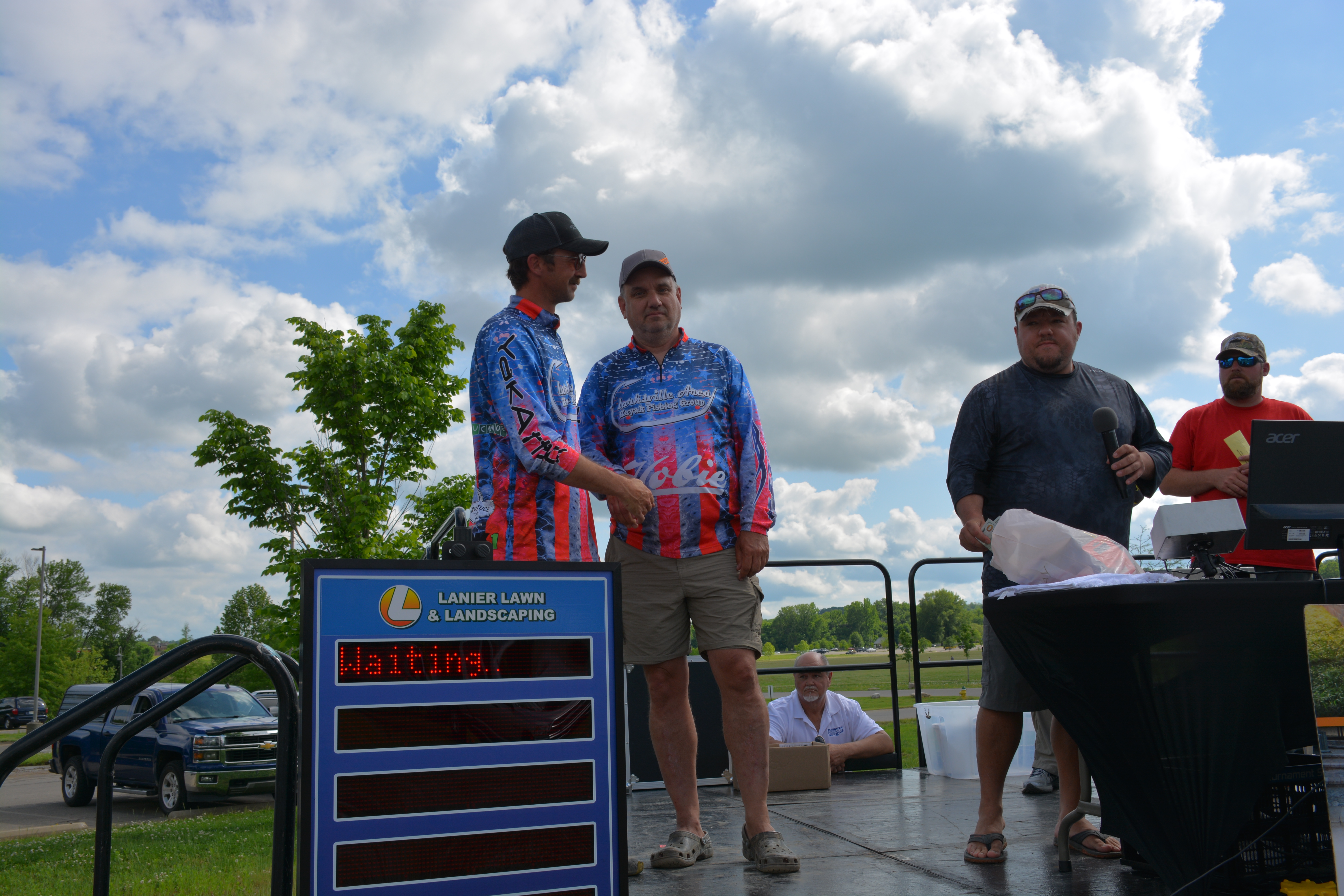 An impressive weigh-in started with the Traditional Bass group. Having a five bass limit and three catfish limit, each fisherman or team had the opportunity to compete for heaviest weigh-in and biggest fish weigh-in. Shannon Moates and Blake Lehman won this year’s Big Fish – Traditional Bass Division with 5.18 lbs. Weighing in at a remarkable 64.25 lbs, Stephen Terry and Robert Scott won the Big Fish – Catfish Divison. Kayak Bass, due to limiting live well storage, measure their catch on the river and release back into the wild. With the help of Clarksville Area Kayak Fishing Group, the winner of Big Fish – Kayak Bass was Marshall Abbott measuring in at 52.75 inches.