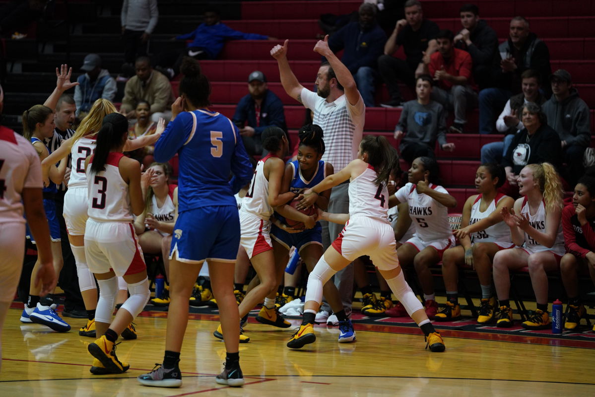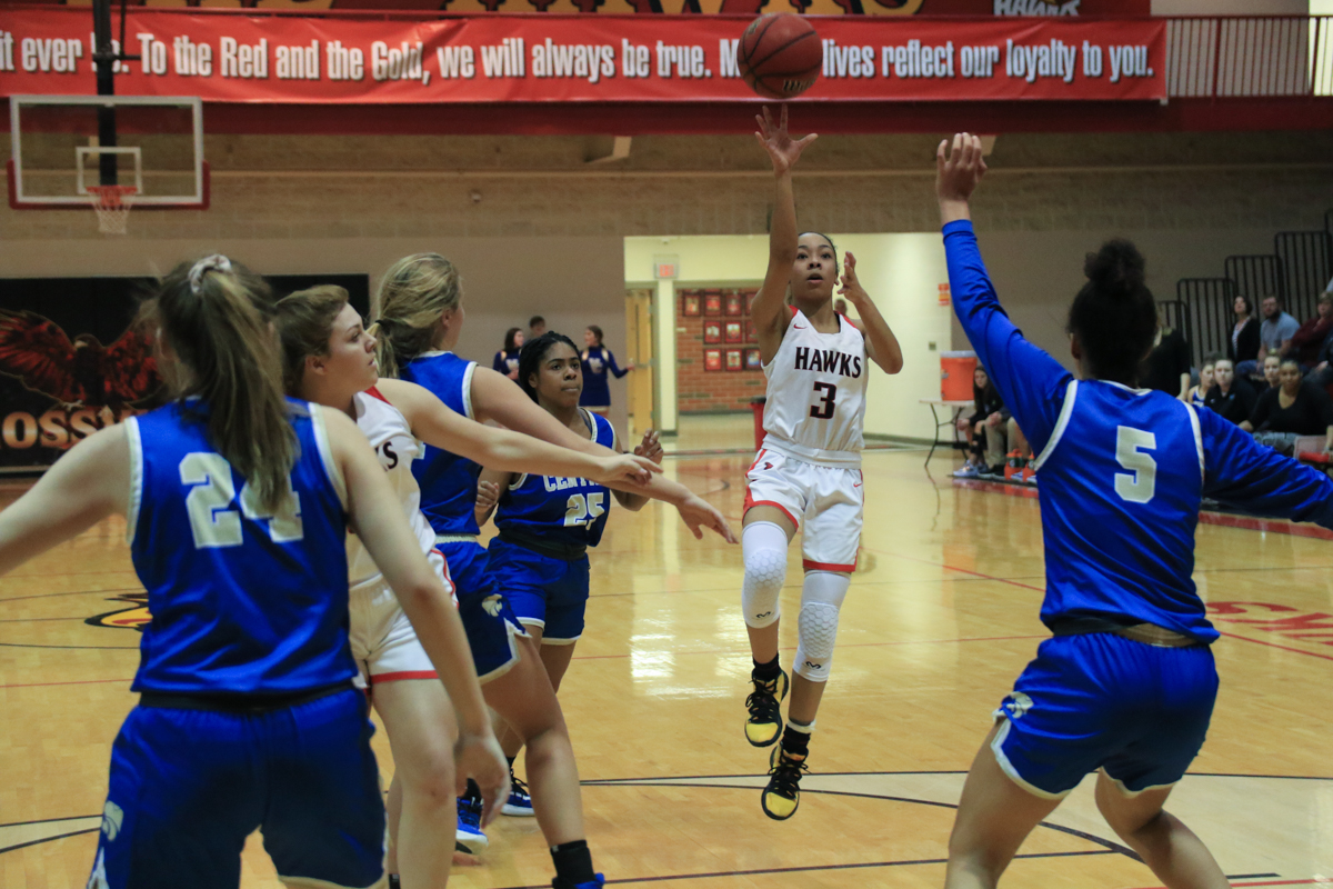 After shaking off some early jitters, the Lady Hawks were able to intercept passing lanes time and time again, leading to easy baskets in transition. Woods raved about his team’s defensive effort after the game.