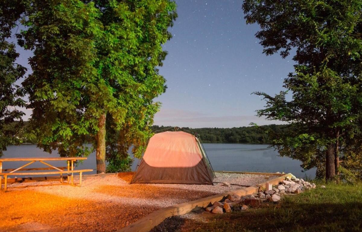 Photo: Tent camping along the Kentucky Lake shoreline at Land Between the Lakes. Photo by Jesse Kunerth.