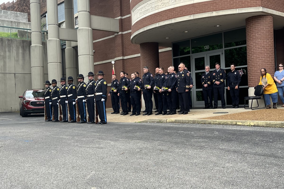 The Clarksville Police Department, Montgomery County Sheriff’s Office, Austin Peay State University Police and Fort Campbell Police were all represented at the ceremony. Clarksville Mayor Joe Pitts, Montgomery County Mayor Wes Golden, and District Attorney General Robert Nash spoke at the event.