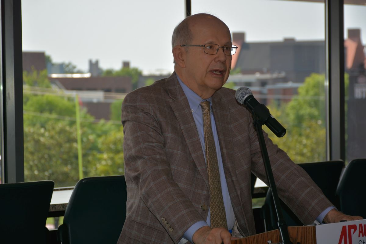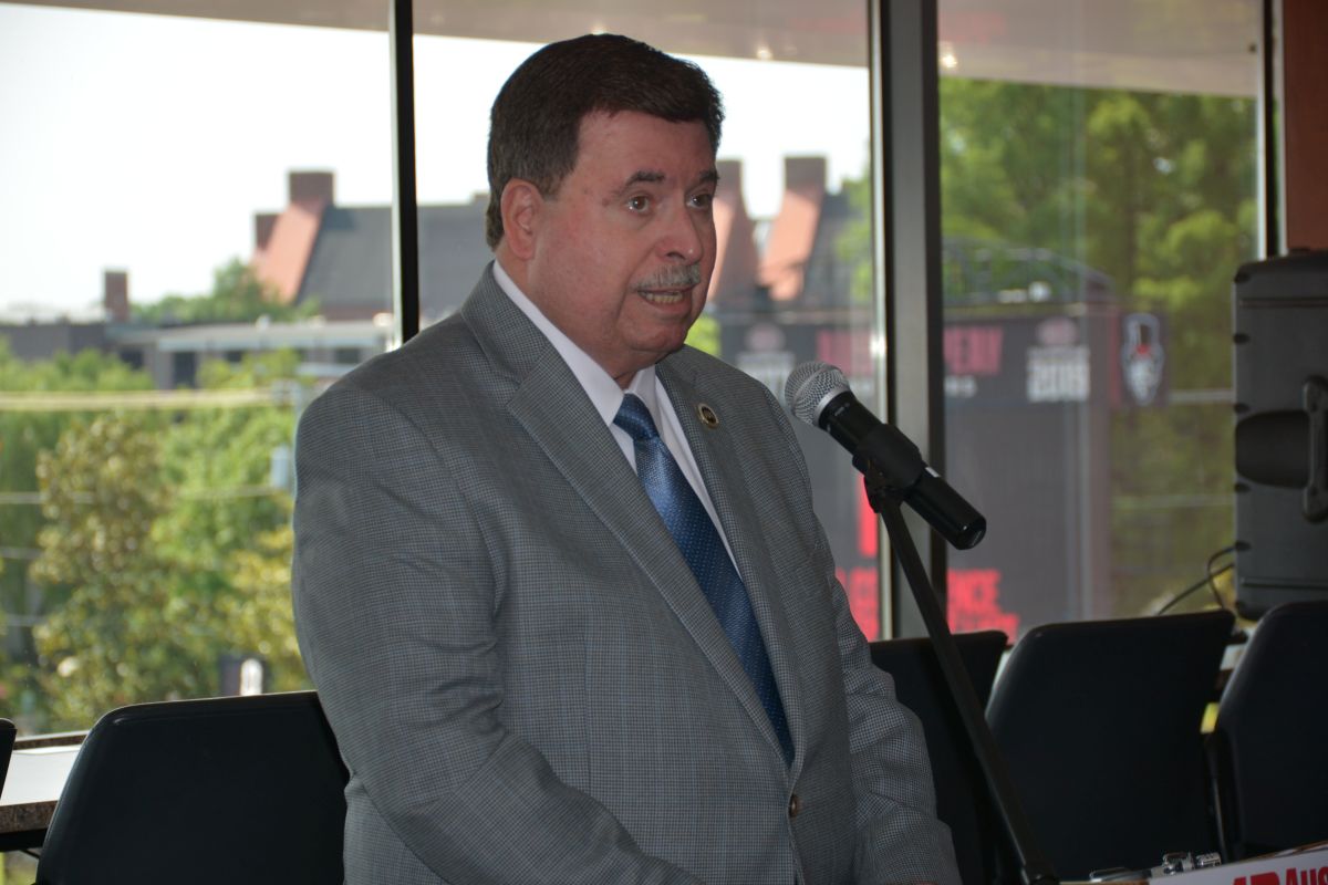 Tennessee Highway Safety Office Director, Buddy Lewis, speaking at the Hands Across the Border law enforcement safety event at Austin Peay on May 26, 2023. (Lee Erwin)
